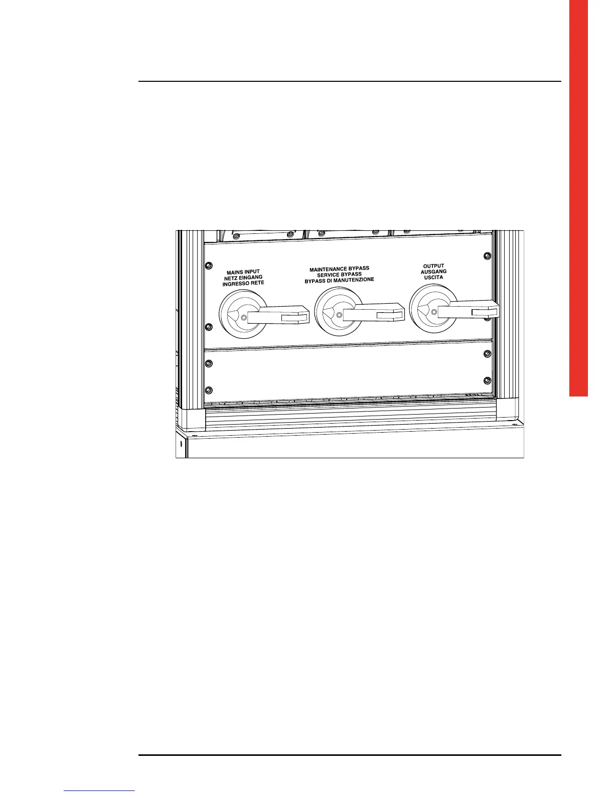 Before connecting the output make certain the UPS is off and there is no voltage on the output disconnector terminals.