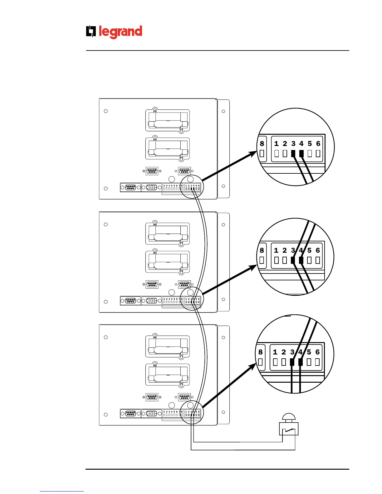 The following figure shows how the emergency power off device has to be connected if there are 3 contact interfaces.