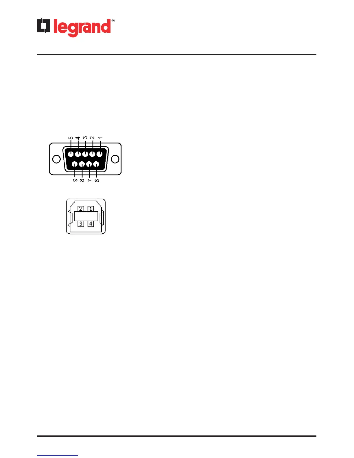 Las siguientes figuras muestran el pinout del RS232 y las interfaces USB: