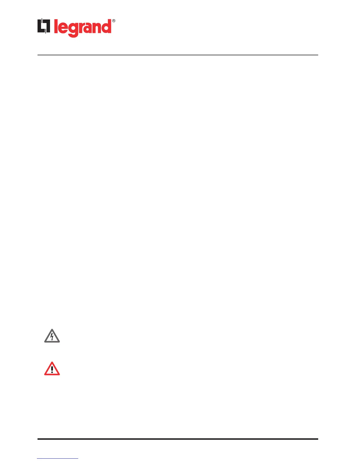 indicata nel manuale. Tutti i prodotti Legrand devono essere esclusivamente aperti e riparati da