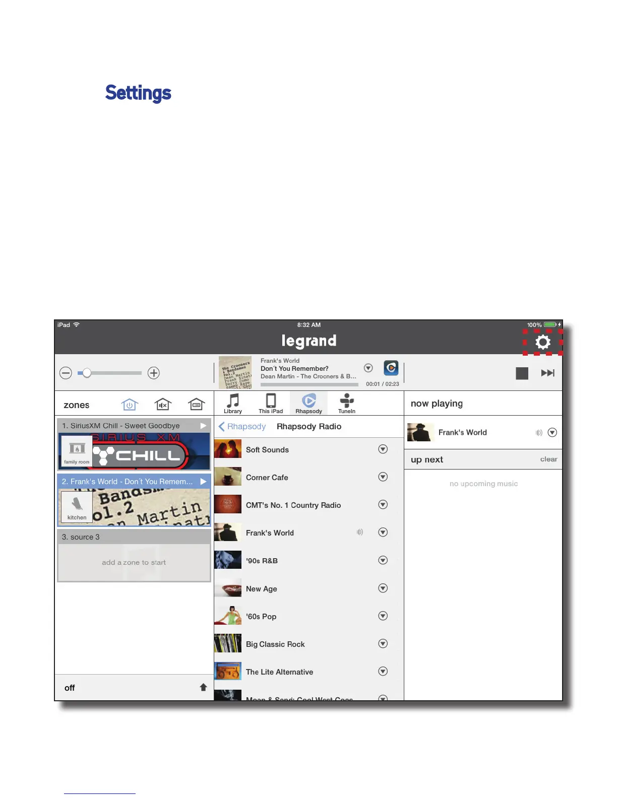 settings. Within Settings, you can add zones, setup additional streaming ser-