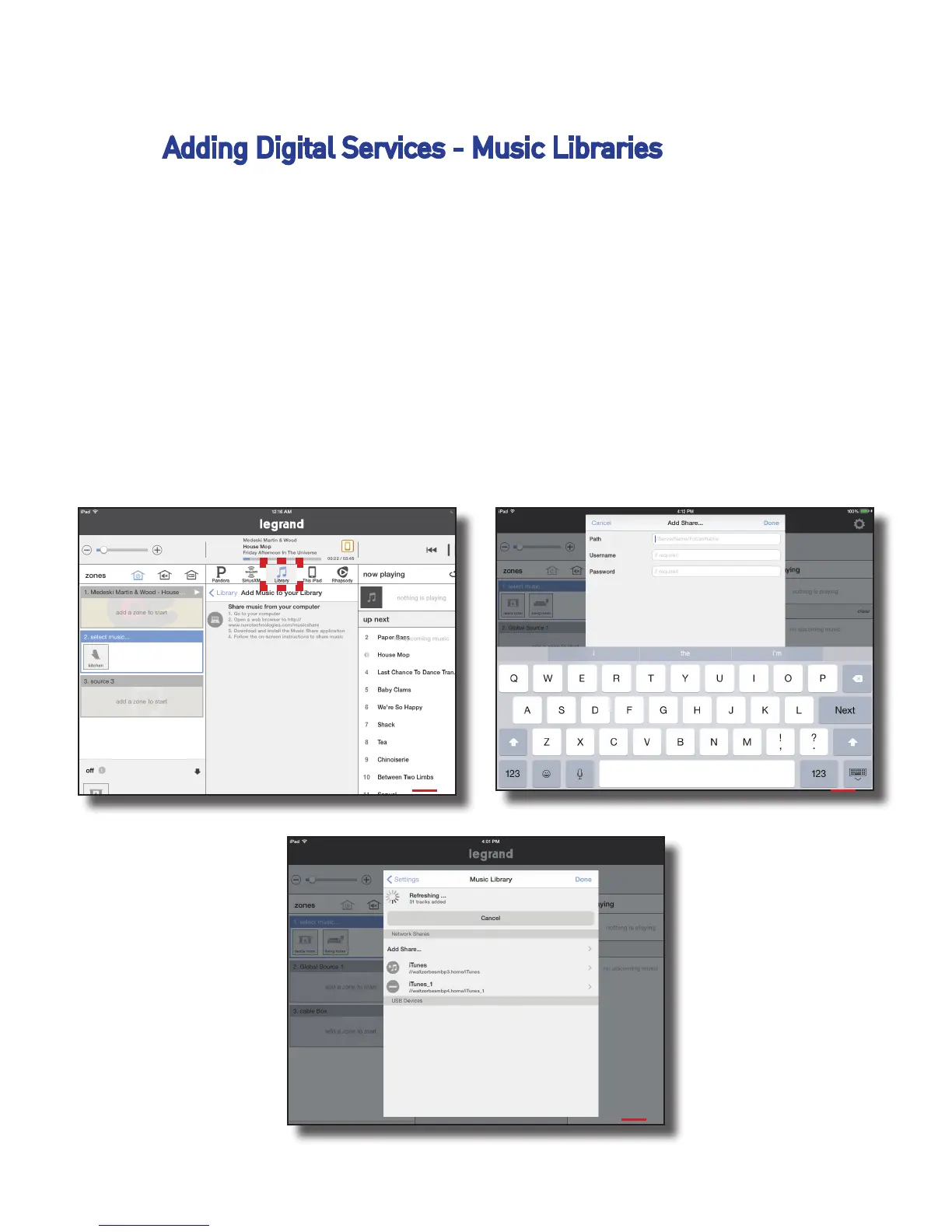 LEGRAND Digital Audio System - Adding Digital Services - Music Libraries