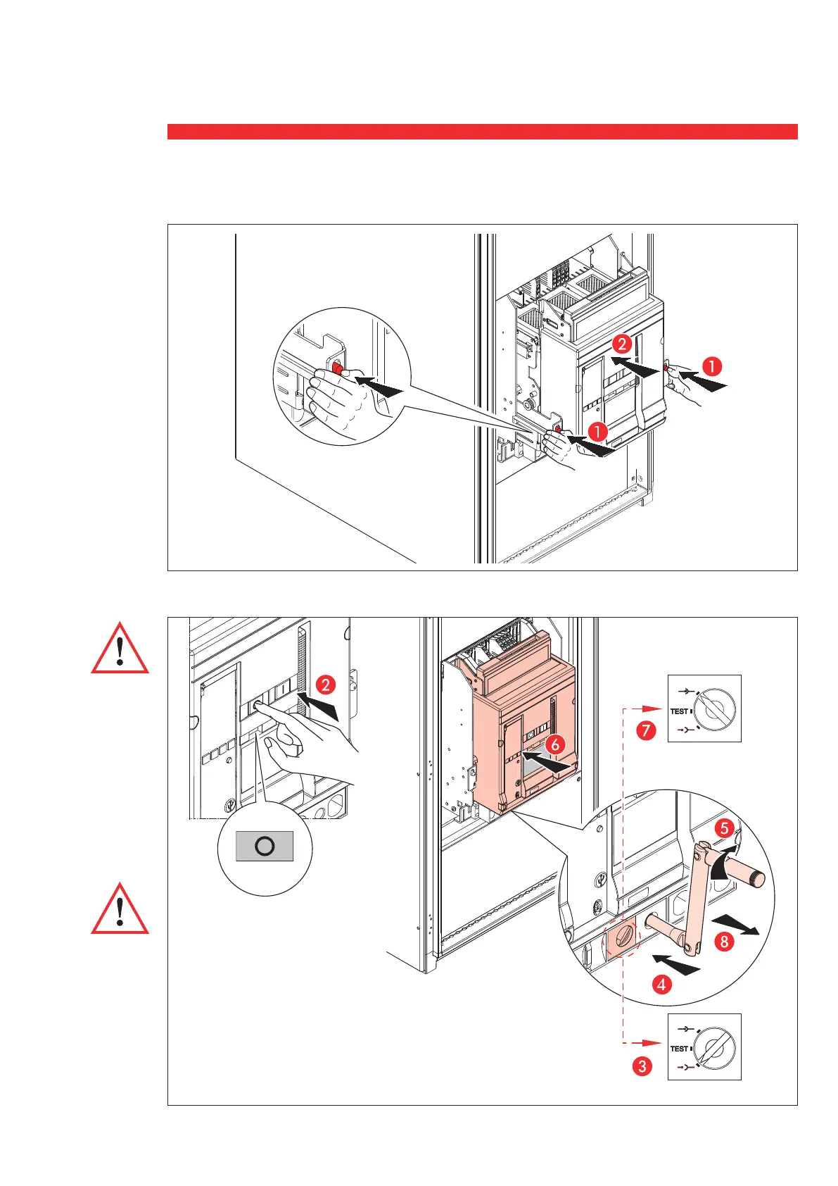 Placer délicatement le disjoncteur en position débrochée et fermer la porte.