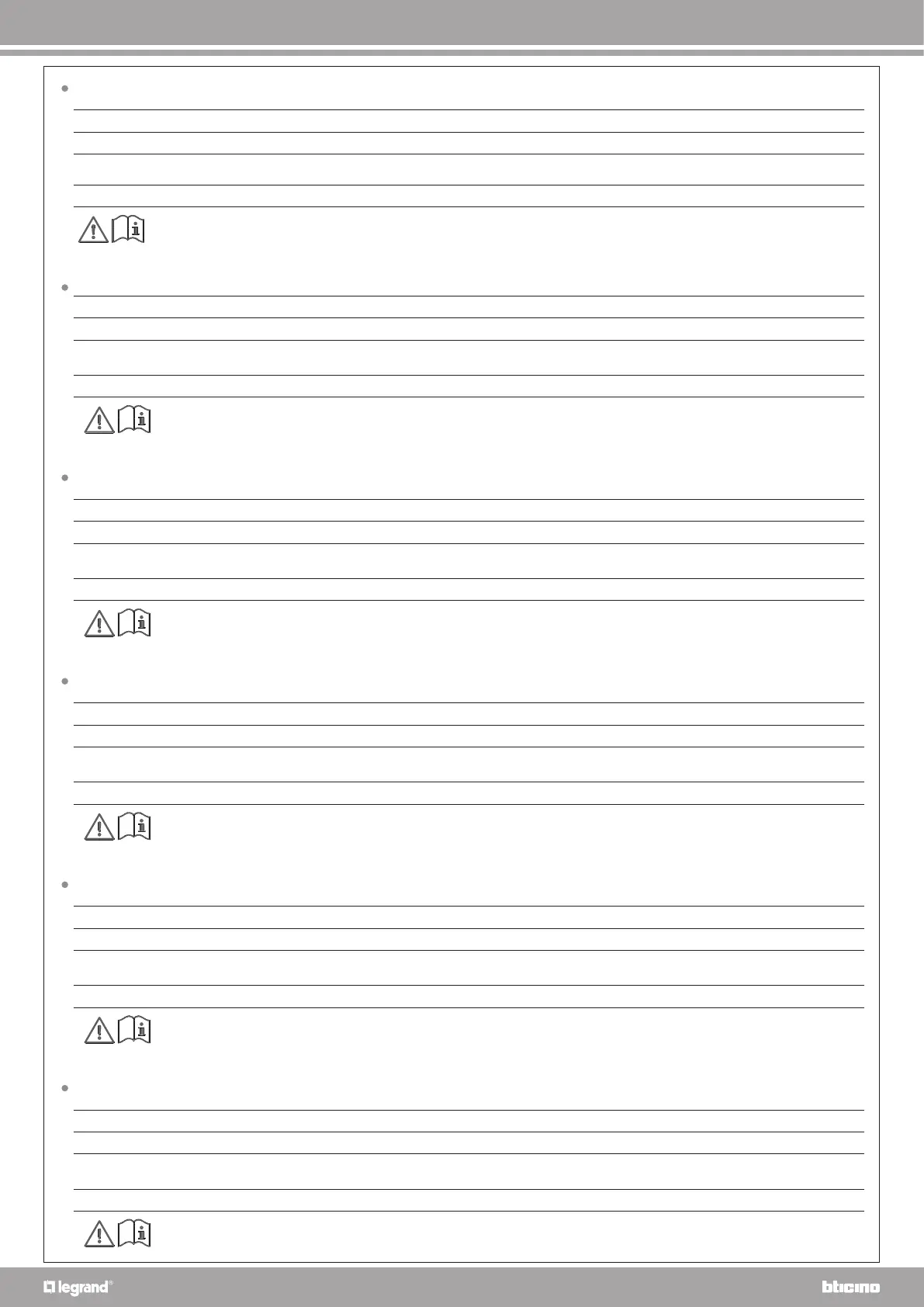 Il est nécessaire d’utiliser un interrupteur omnipolaire à séparation des contacts d’au moins 3 mm, à installer à proximité de l’alimentateur.