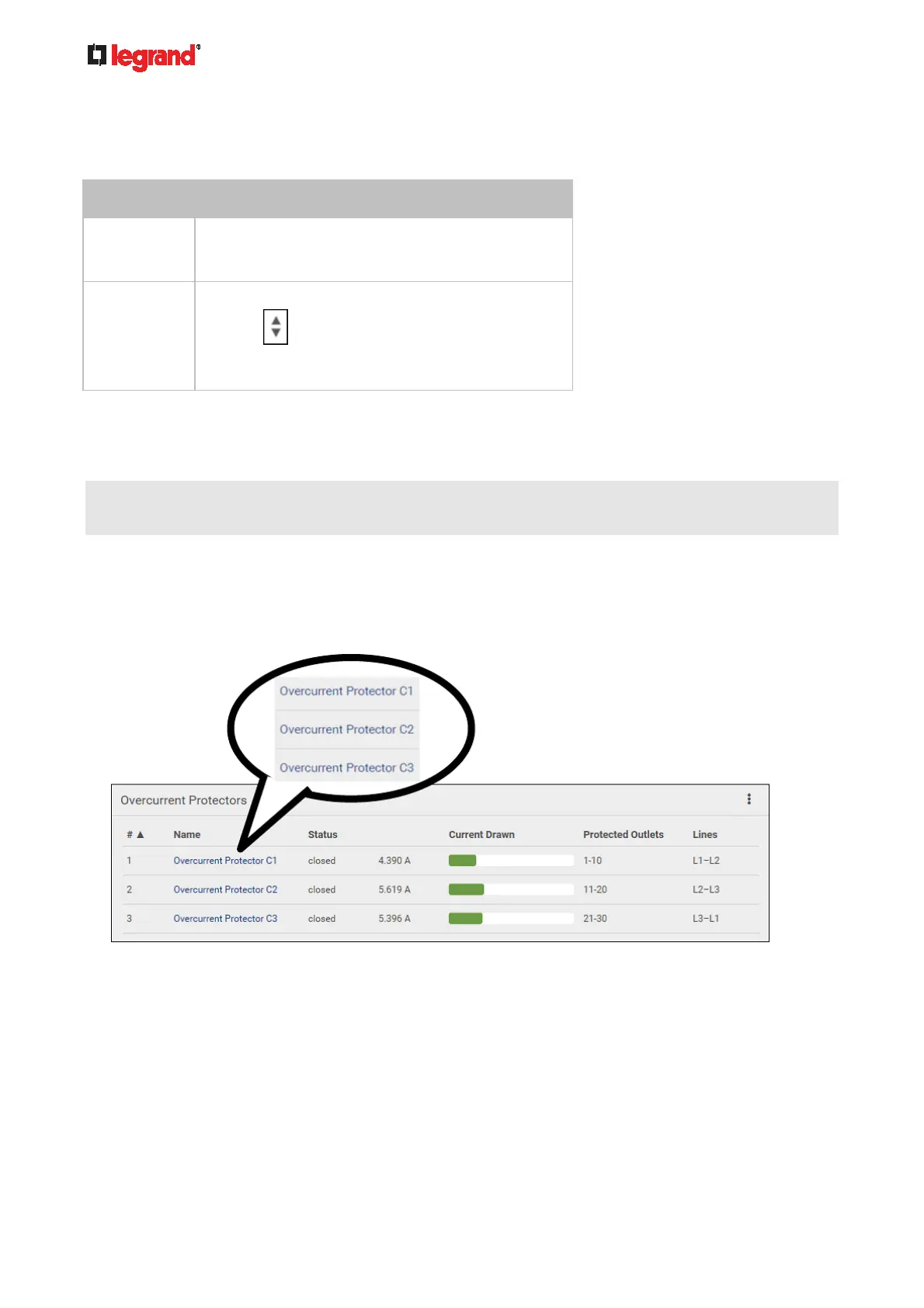 The OCPs page is available only when your Legrand PDU has overcurrent protectors, such as circuit