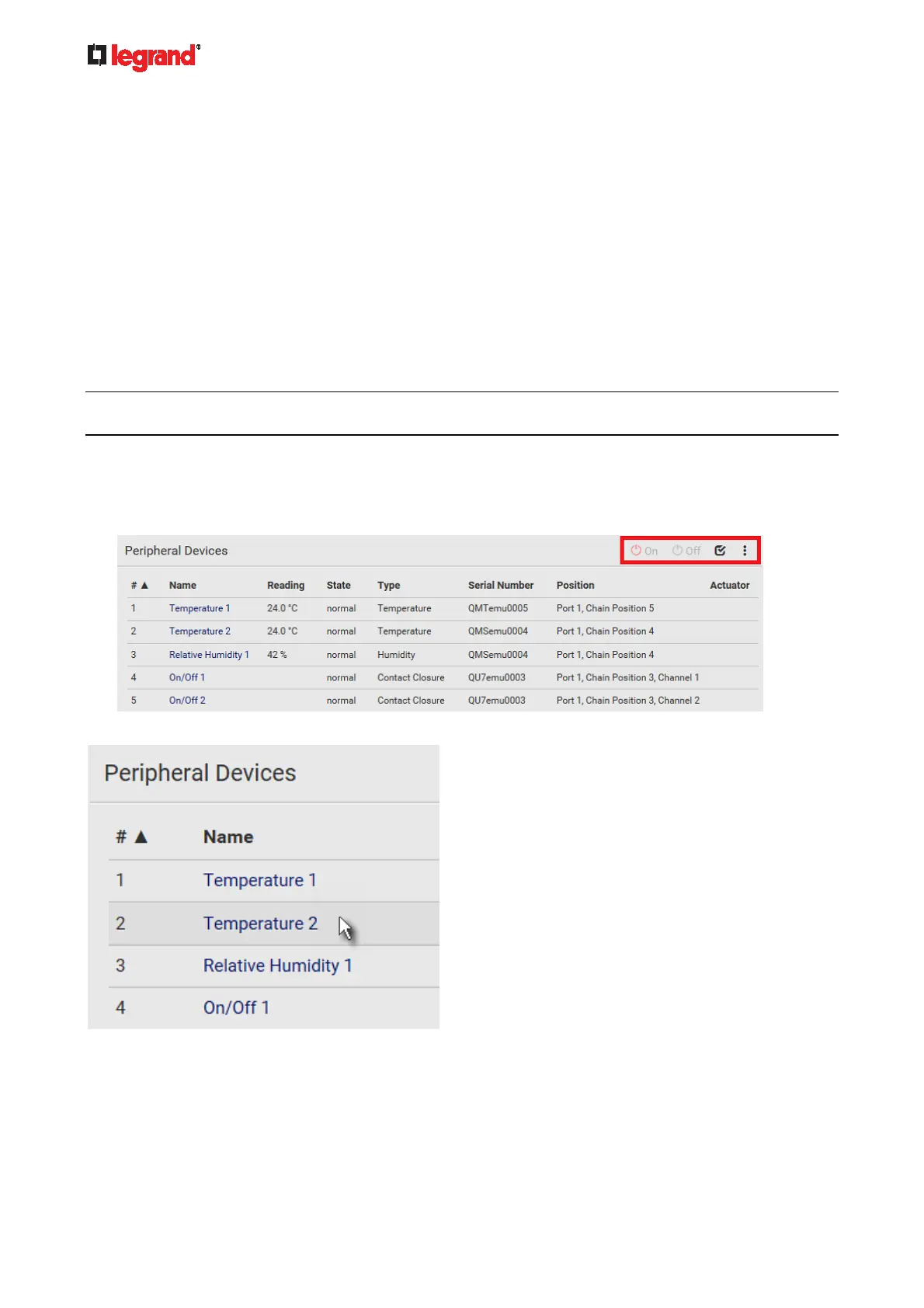 If there are Raritan environmental sensor packages connected to the Legrand PDU, they are listed on the