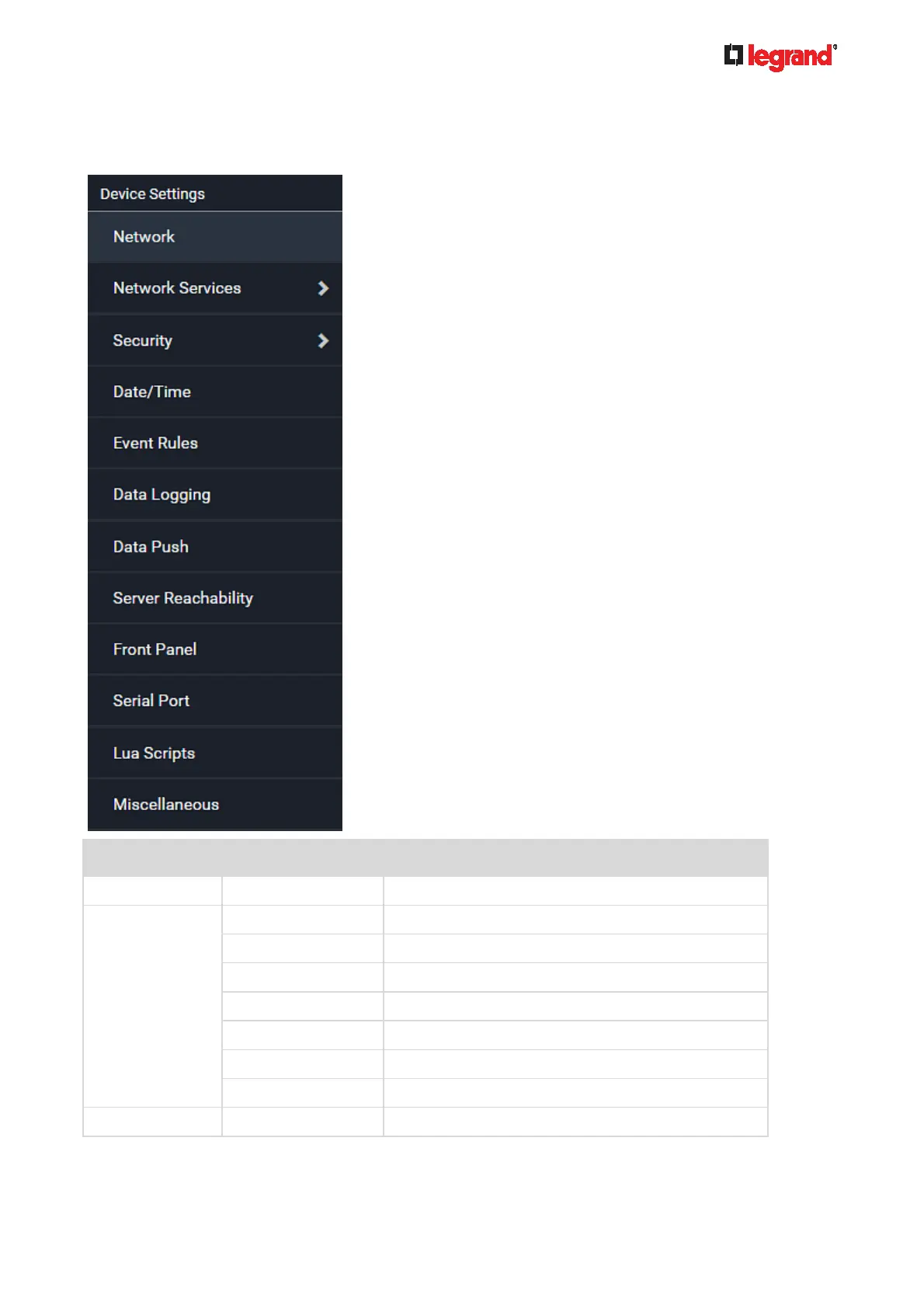 Click 'Device Settings' in the Menu (on page 84), and the following submenu displays.