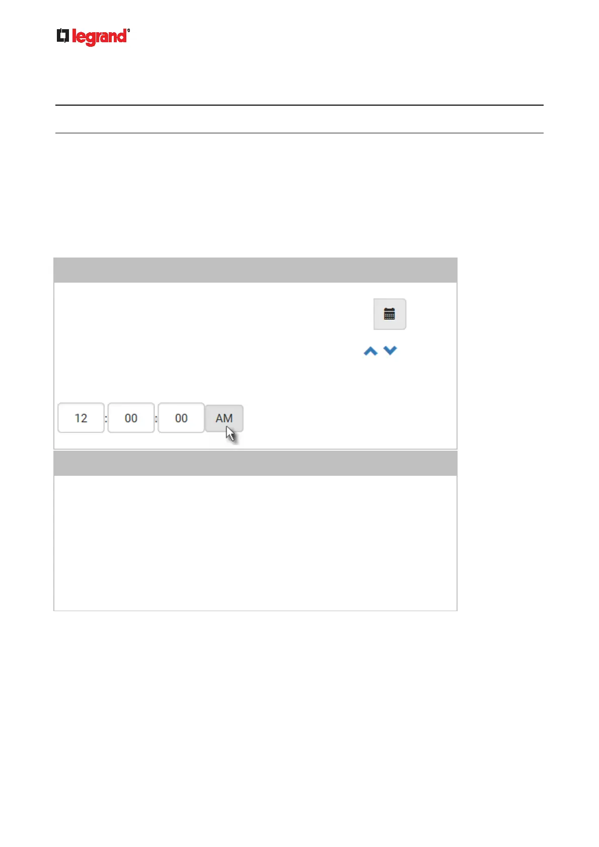 Set the internal clock on the Legrand PDU manually, or link to a Network Time Protocol (NTP) server.