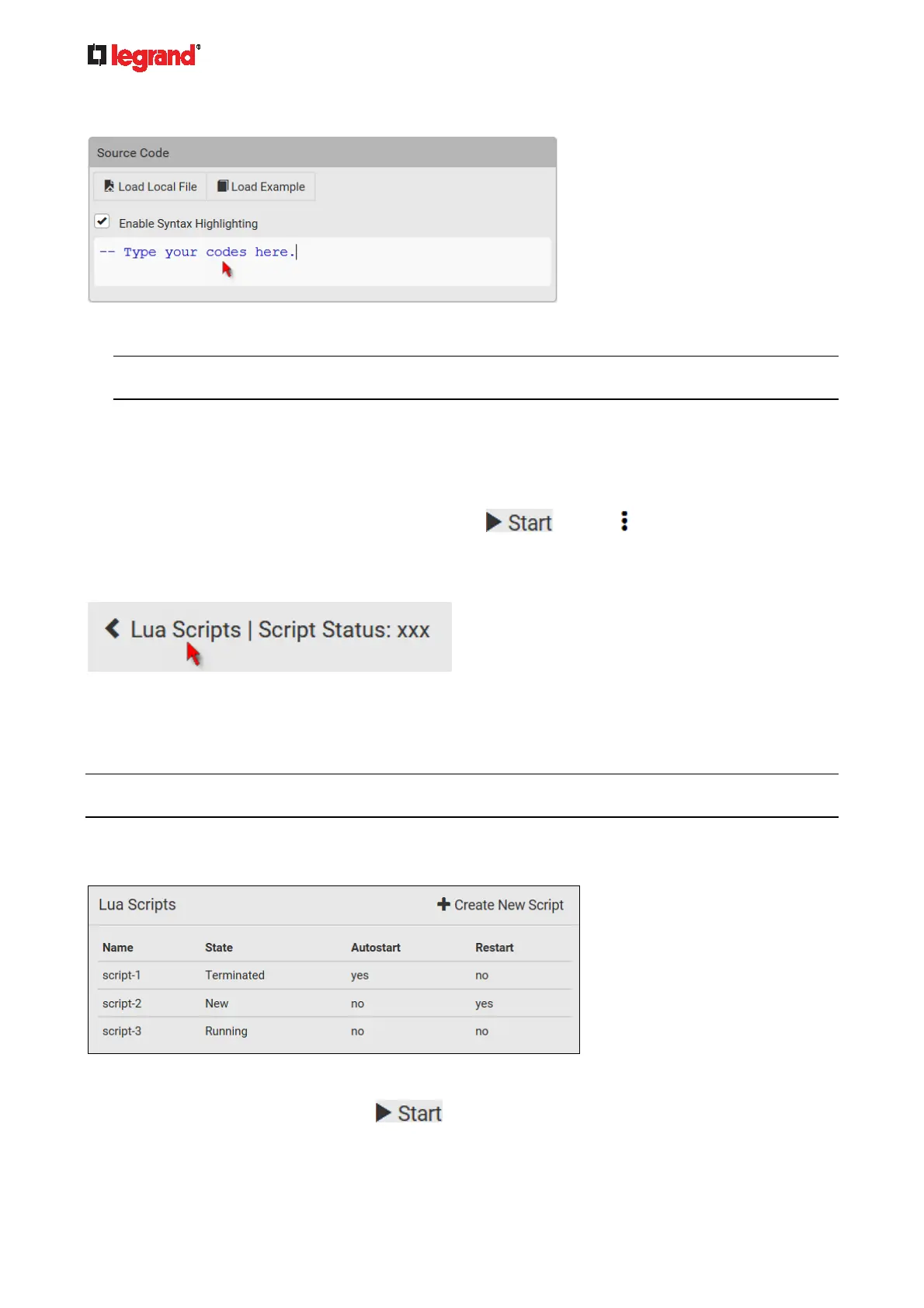 To use one of Legrand's Lua script examples, click Load Example.