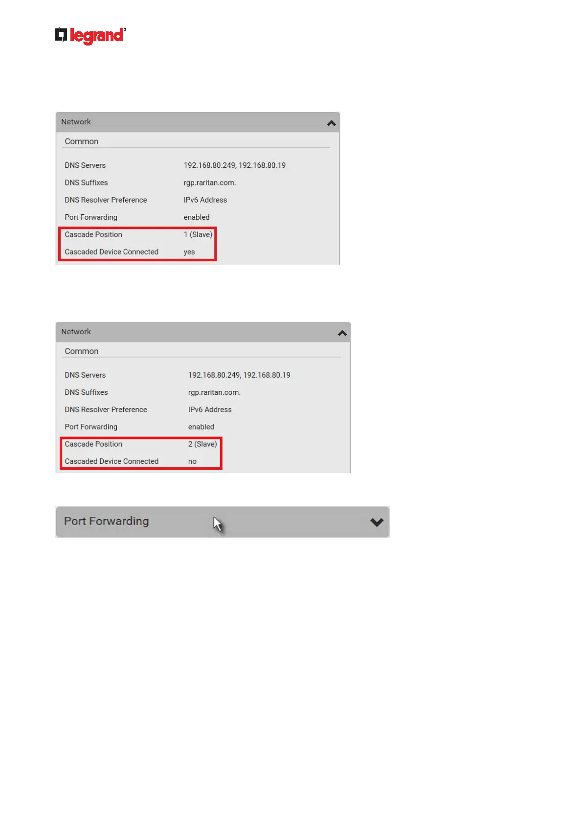 the Cascade Position field and yes in the Cascaded Device Connected field.