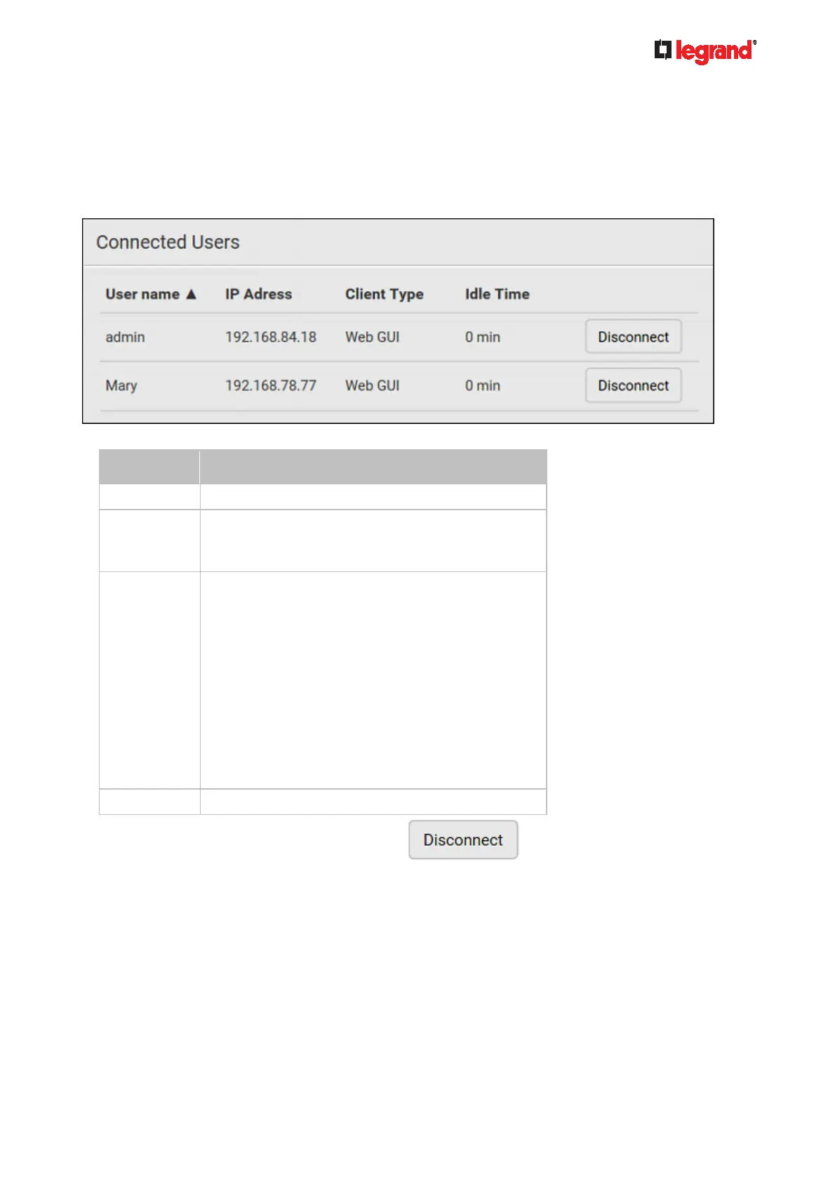 privileges, you can terminate any user's connection to the Legrand PDU.