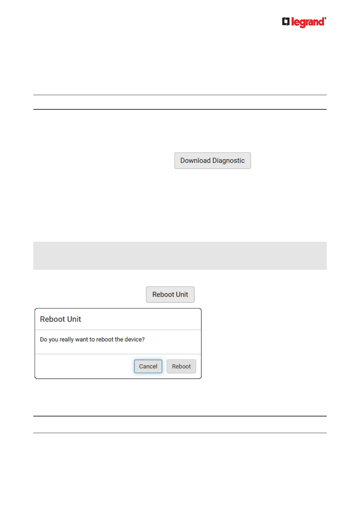 Important: This function is for use by Legrand Field Engineers or when you are directed by Legrand Technical