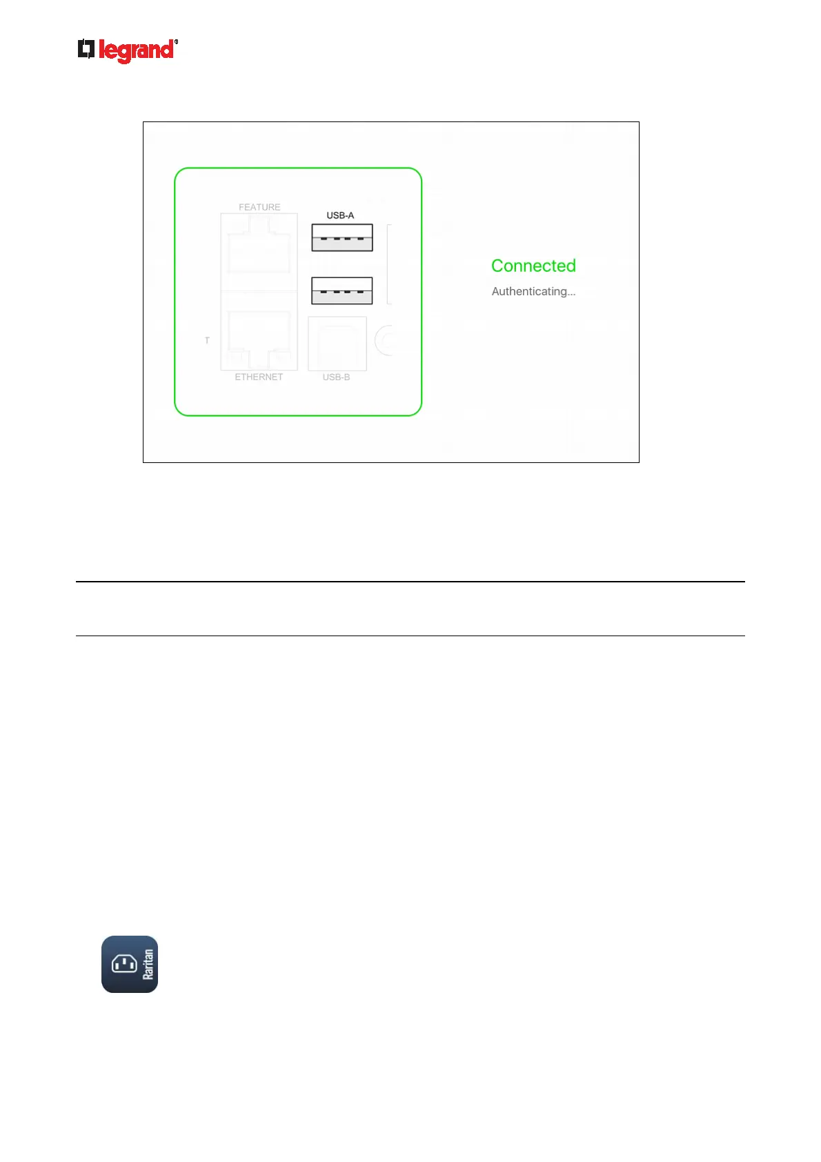 b. The PDView shows the "Connected" message when it detects the connected Legrand PDU.