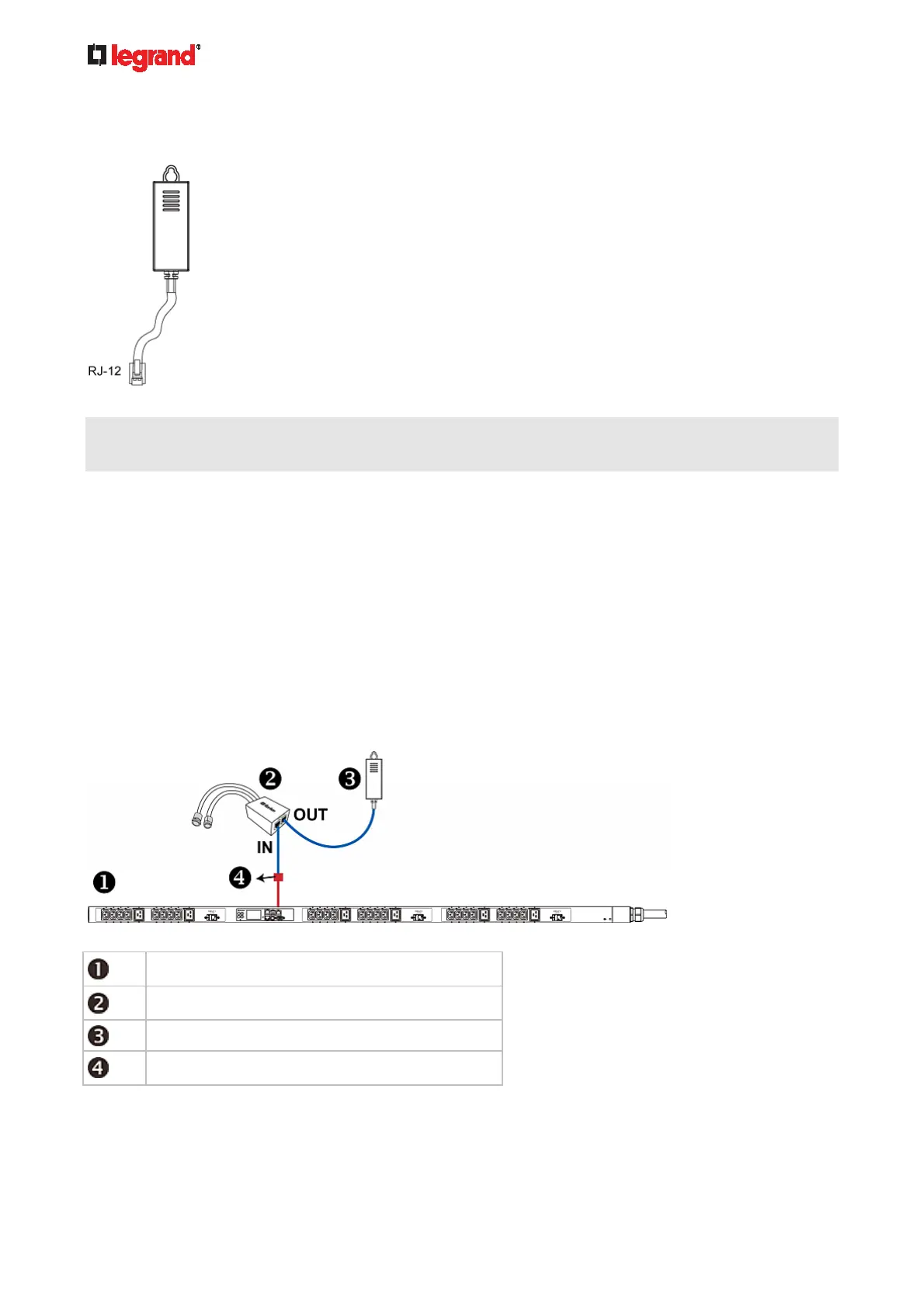 An RJ-12 to RJ-45 adapter is required to connect a DPX sensor package to Legrand PDU.