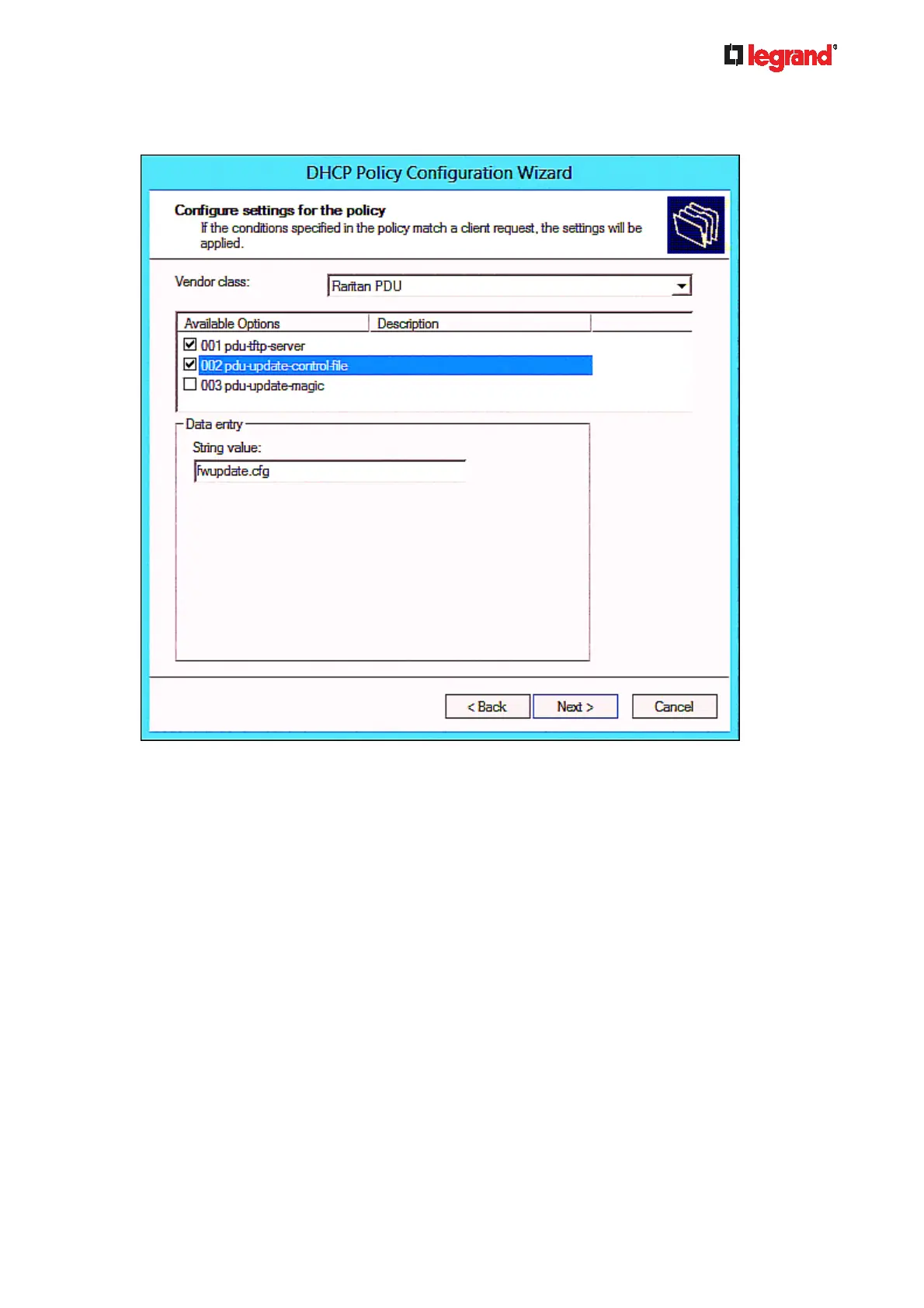 i. Select "003 pdu-update-magic" from the Available Options list, and type any string in the "String
