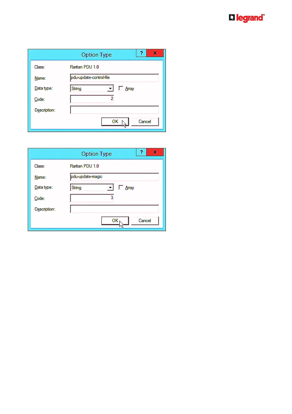 3. Configure server options associated with the "Raritan PDU 1.0" vendor class.