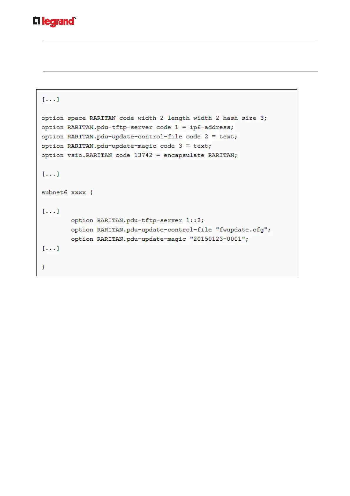 between the magic cookie in DHCP and the one stored in Legrand PDU. Therefore, you must modify the