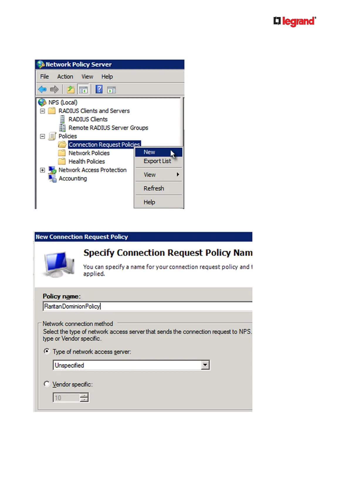 2. Right-click Connection Request Policies and select New. The New Connection Request Policy dialog