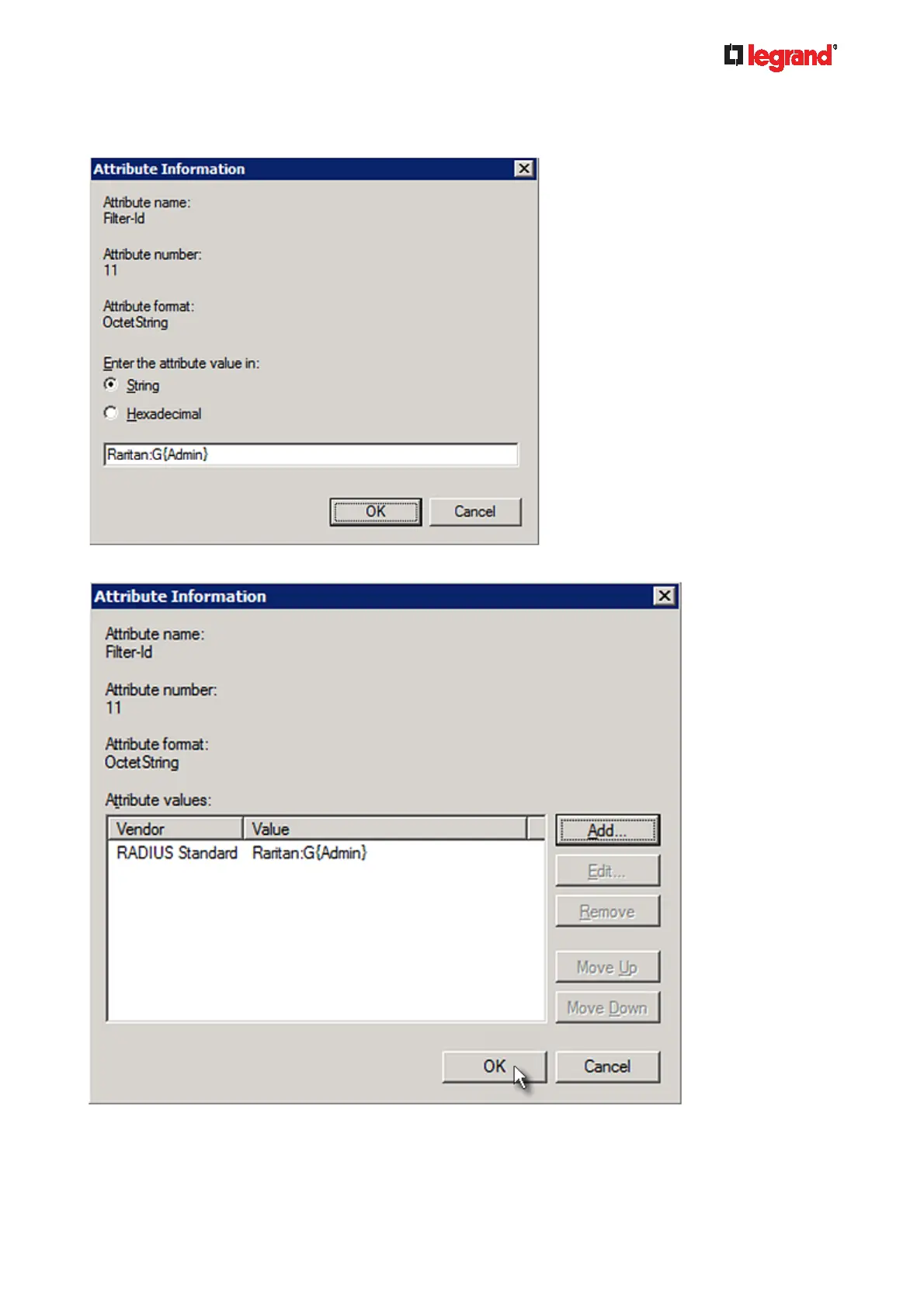 Admin inside the curved brackets {} is the existing role on the Legrand PDU. It is recommended to use