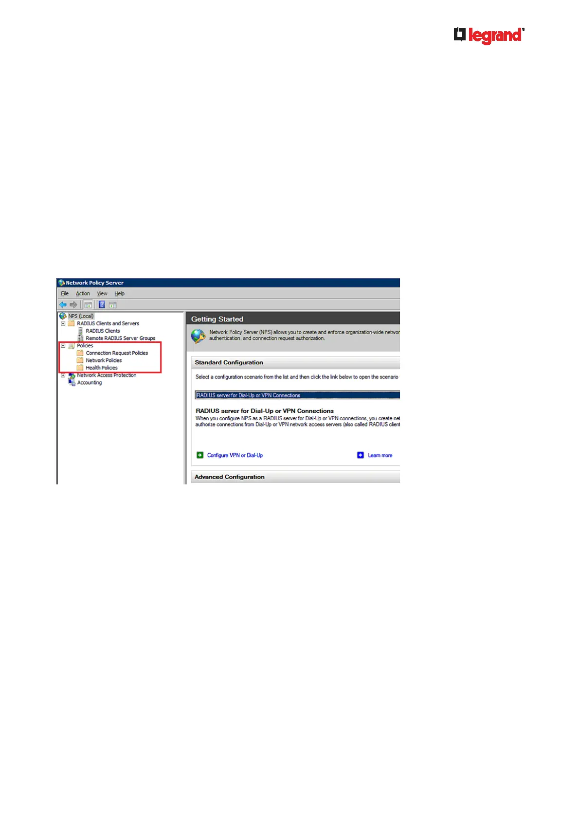 RADIUS protocol selected on your Legrand PDU = CHAP