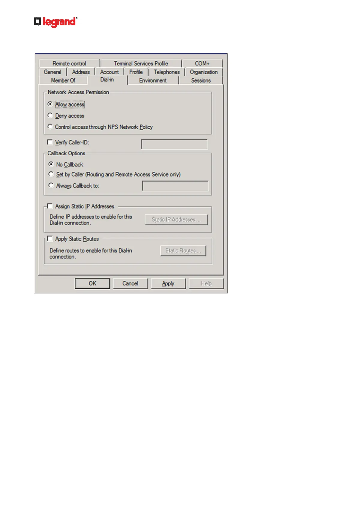 3. Click the Dial-in tab and select the "Allow access" checkbox.