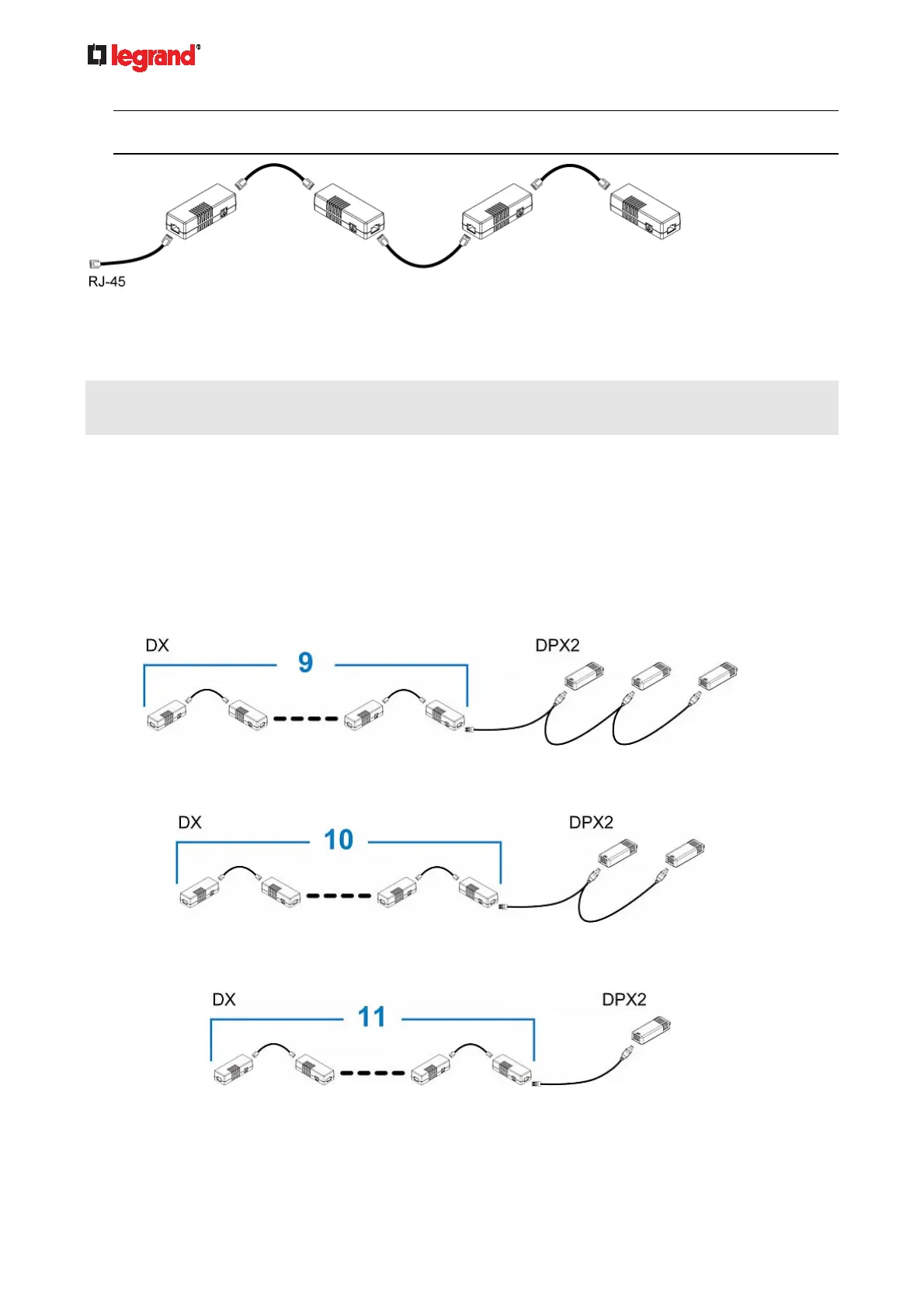 recommended to use an RJ-12 to RJ-45 adapter for connecting the DPX2 to the final DX in the chain.