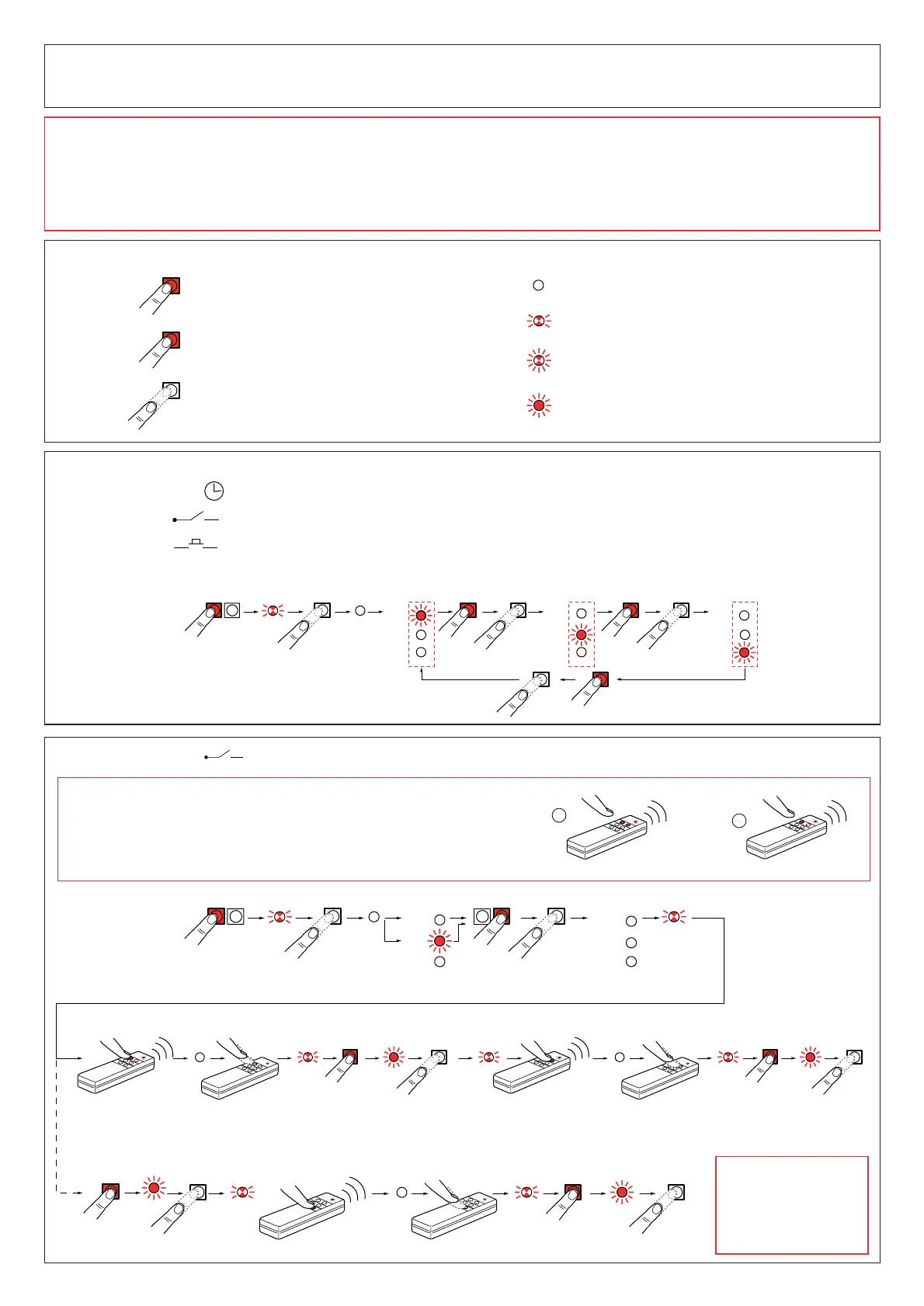 Do not exceed a period of 30 seconds between two presses on one key, otherwise the receiver will automatically exit teach mode.