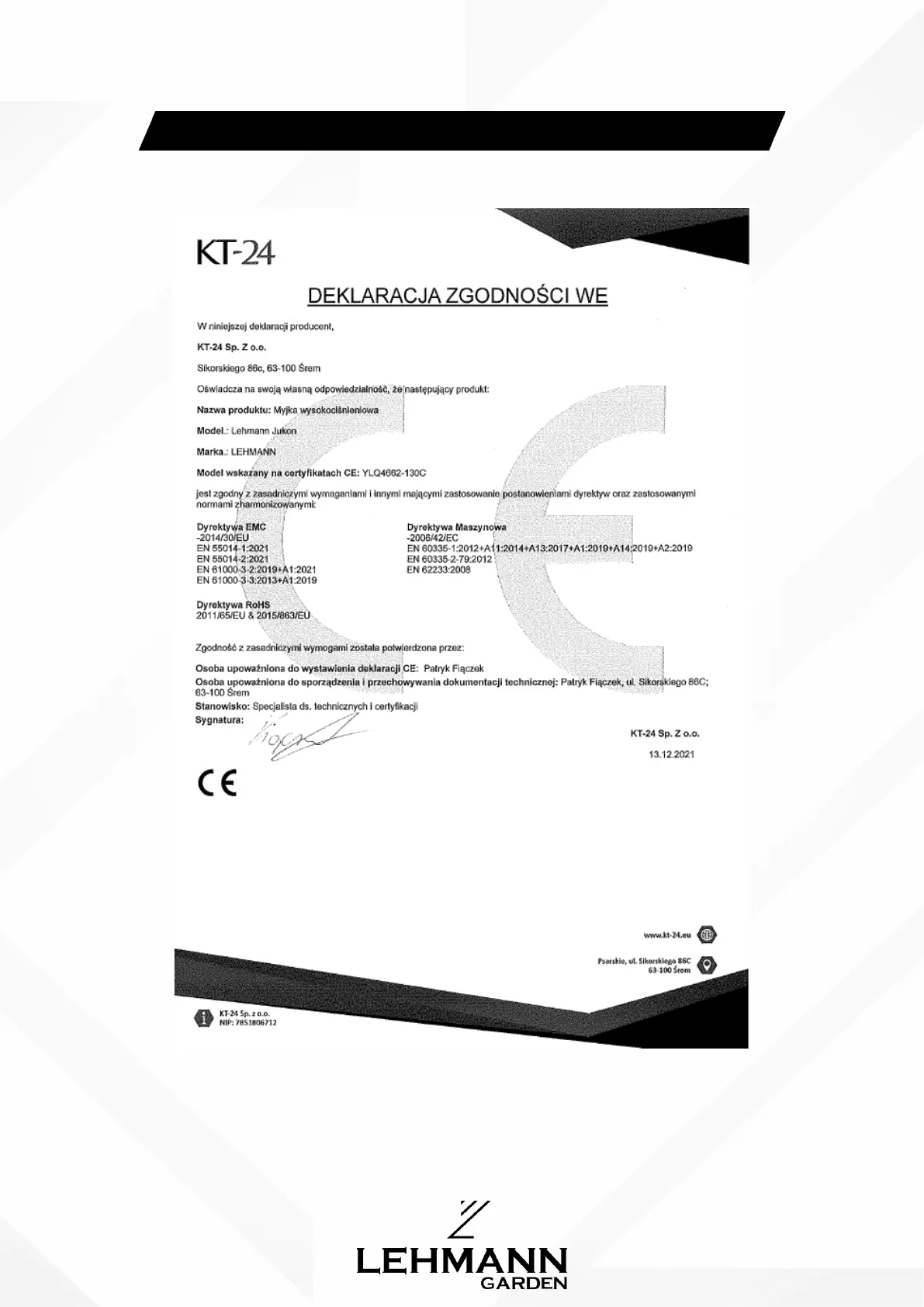 LEHMANN LGAPW-1613 - Deklaracja ZgodnośCI