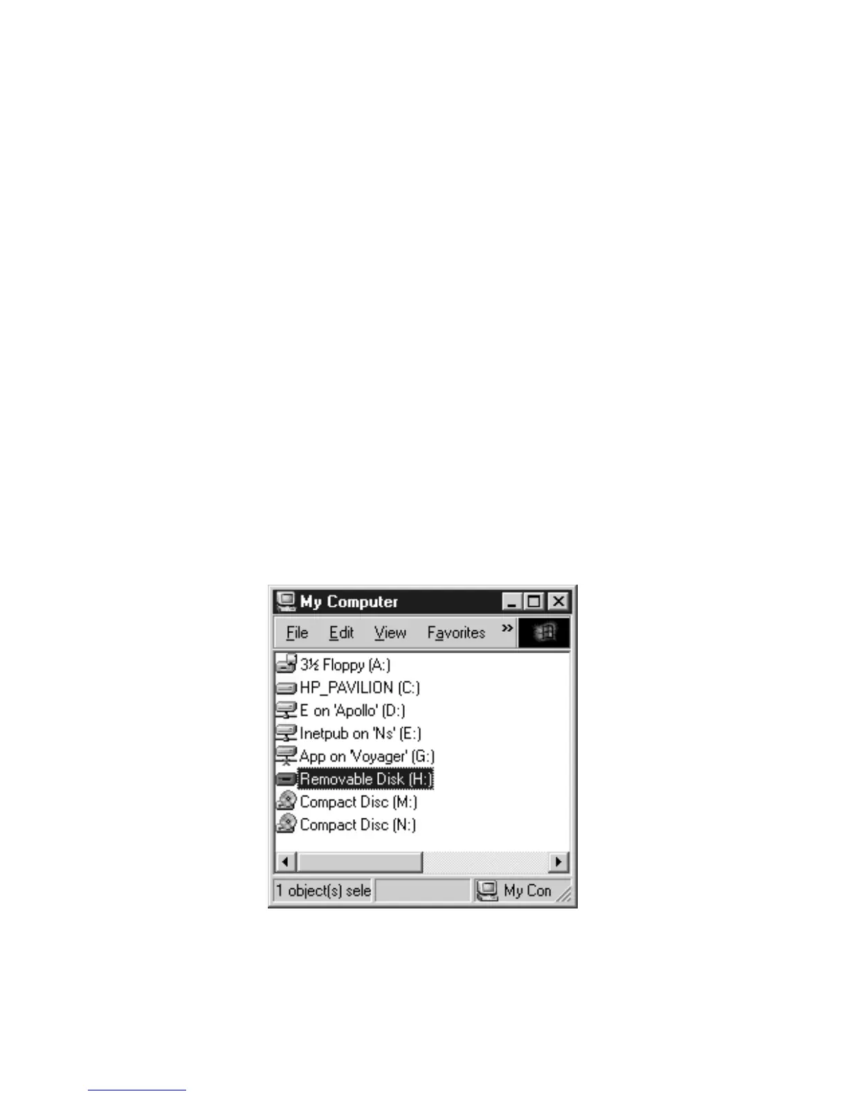 MMC card reader appears as removable disk drive (H:).