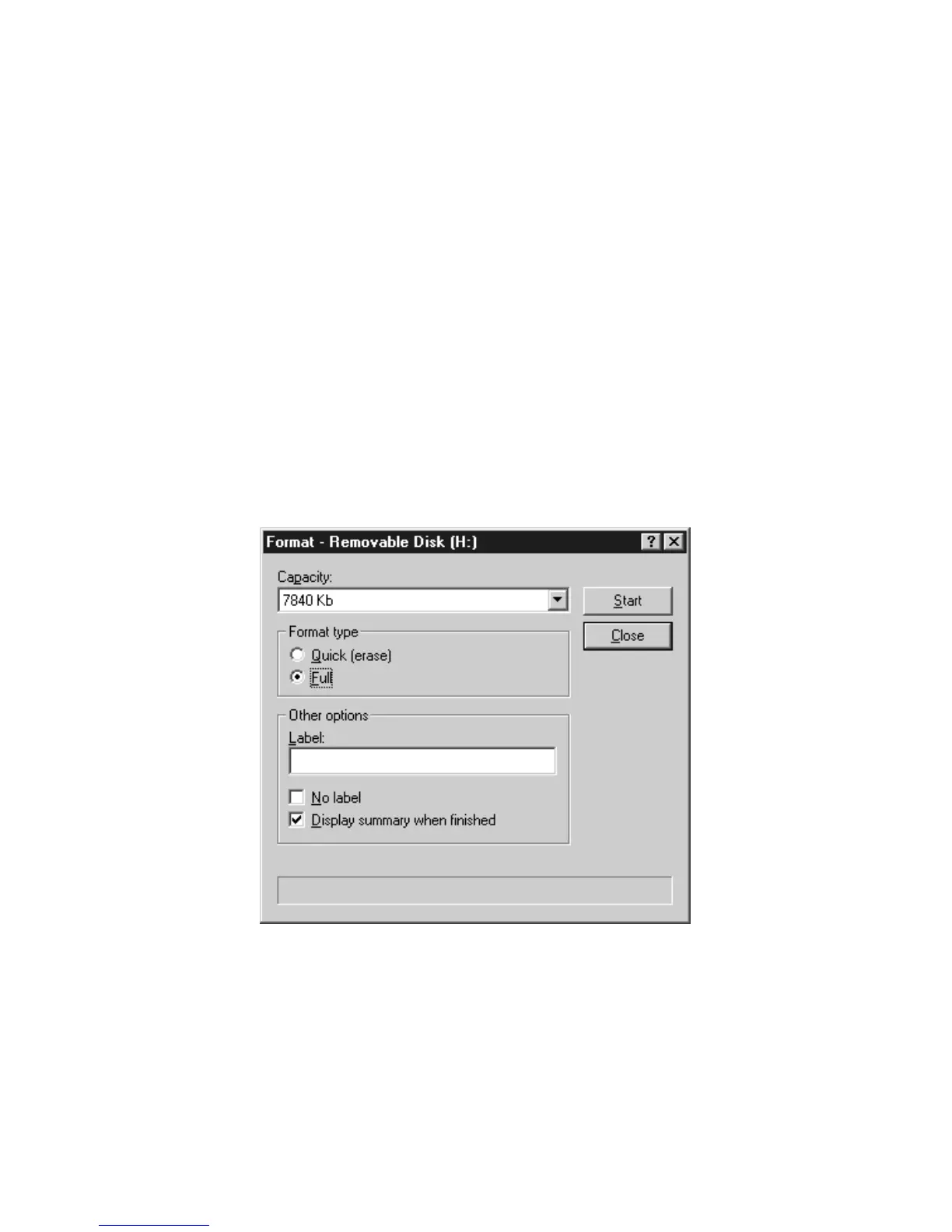 4. Select either a quick or full format, then click Start.