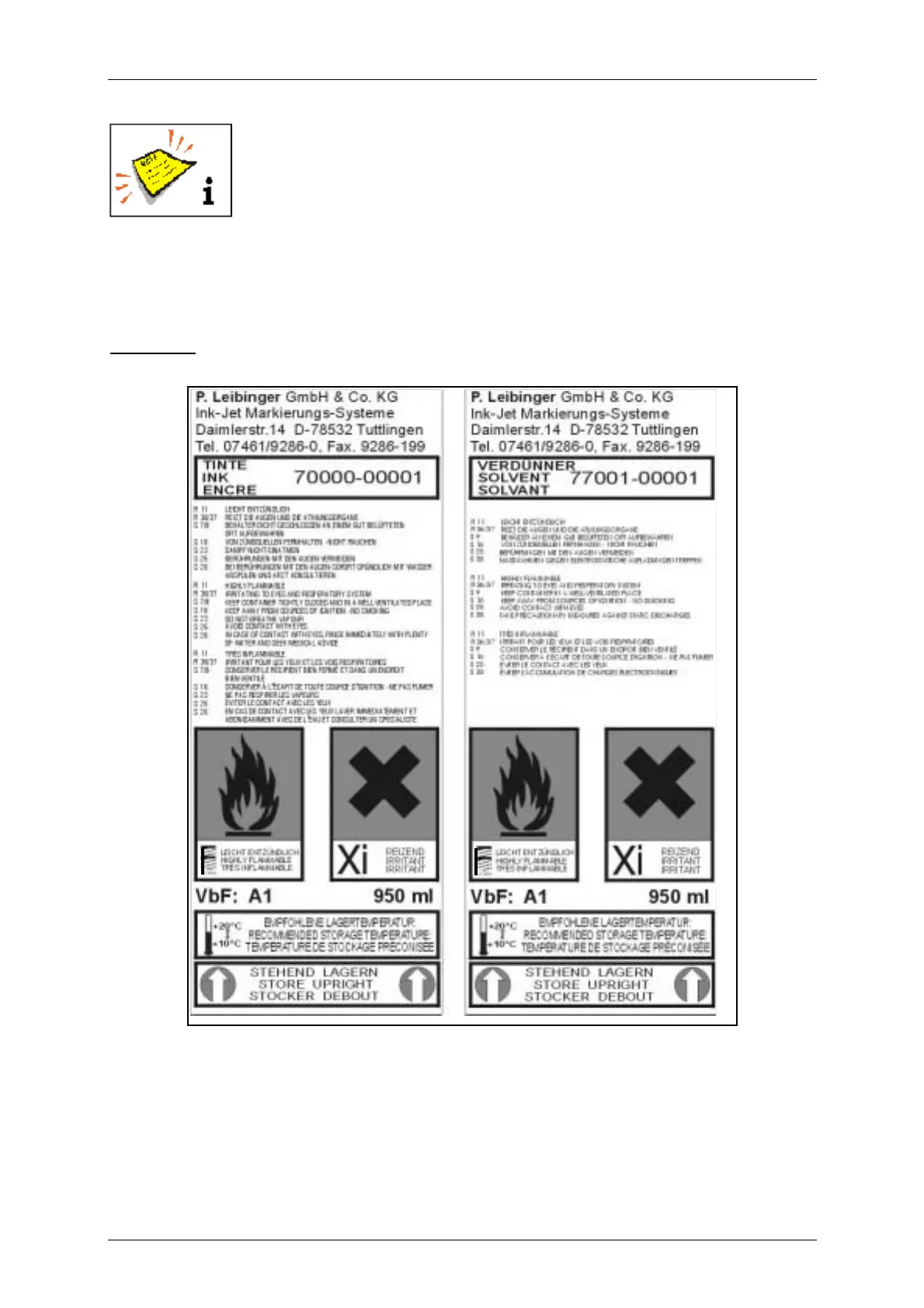 In the following you will find examples for the marking of inks and solvents.