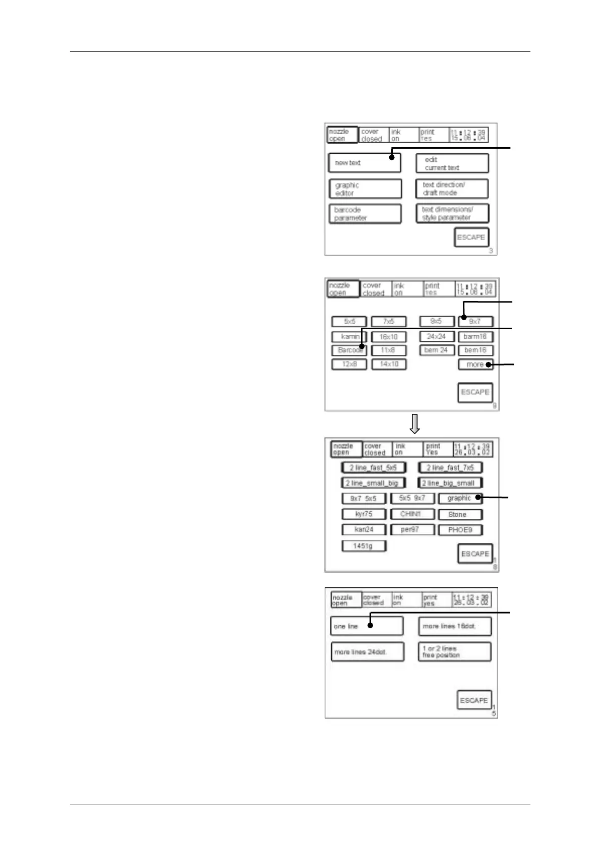 entry of new texts. The “font menu“ <E9> is