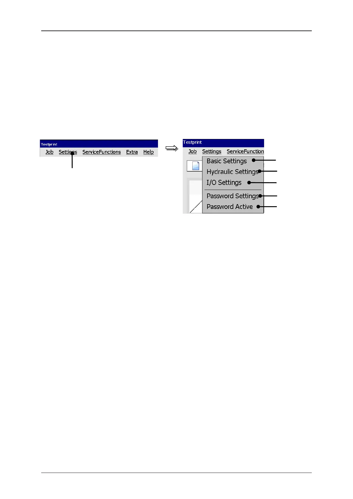 The drop-down menu <Settings> in the menu bar of the main window offers the