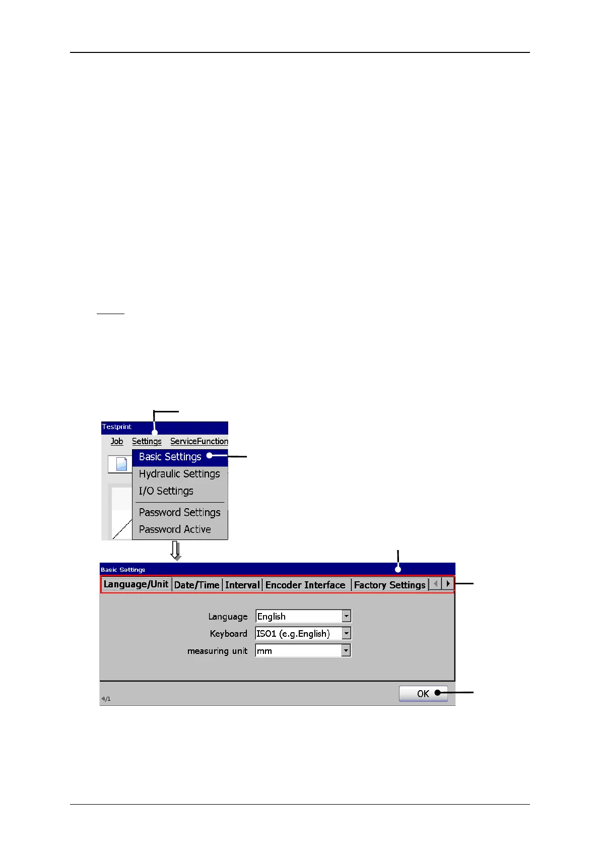 option <Basic Settings> (2). This opens a dialog box (3) whith a tab bar. The tabs