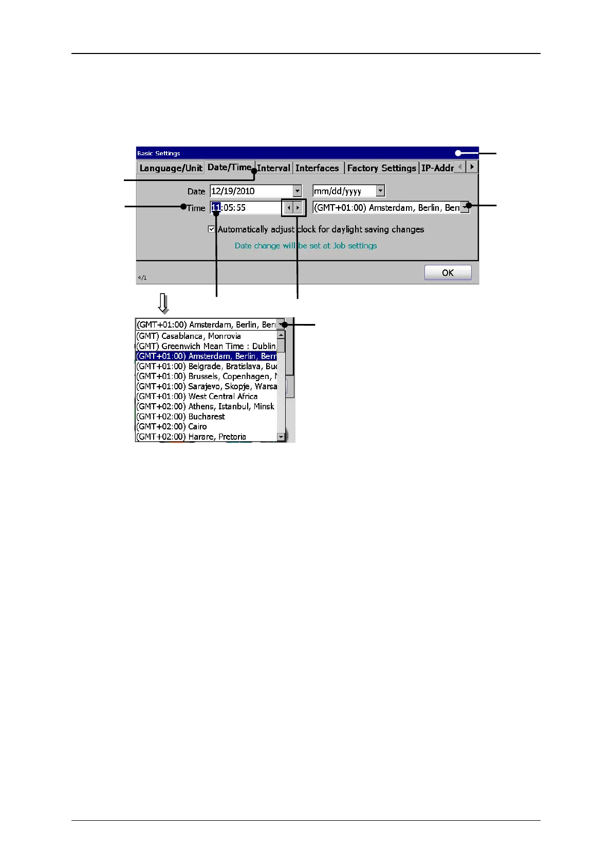 To define the time zone press on the drop-down list <Time zone> (6). The