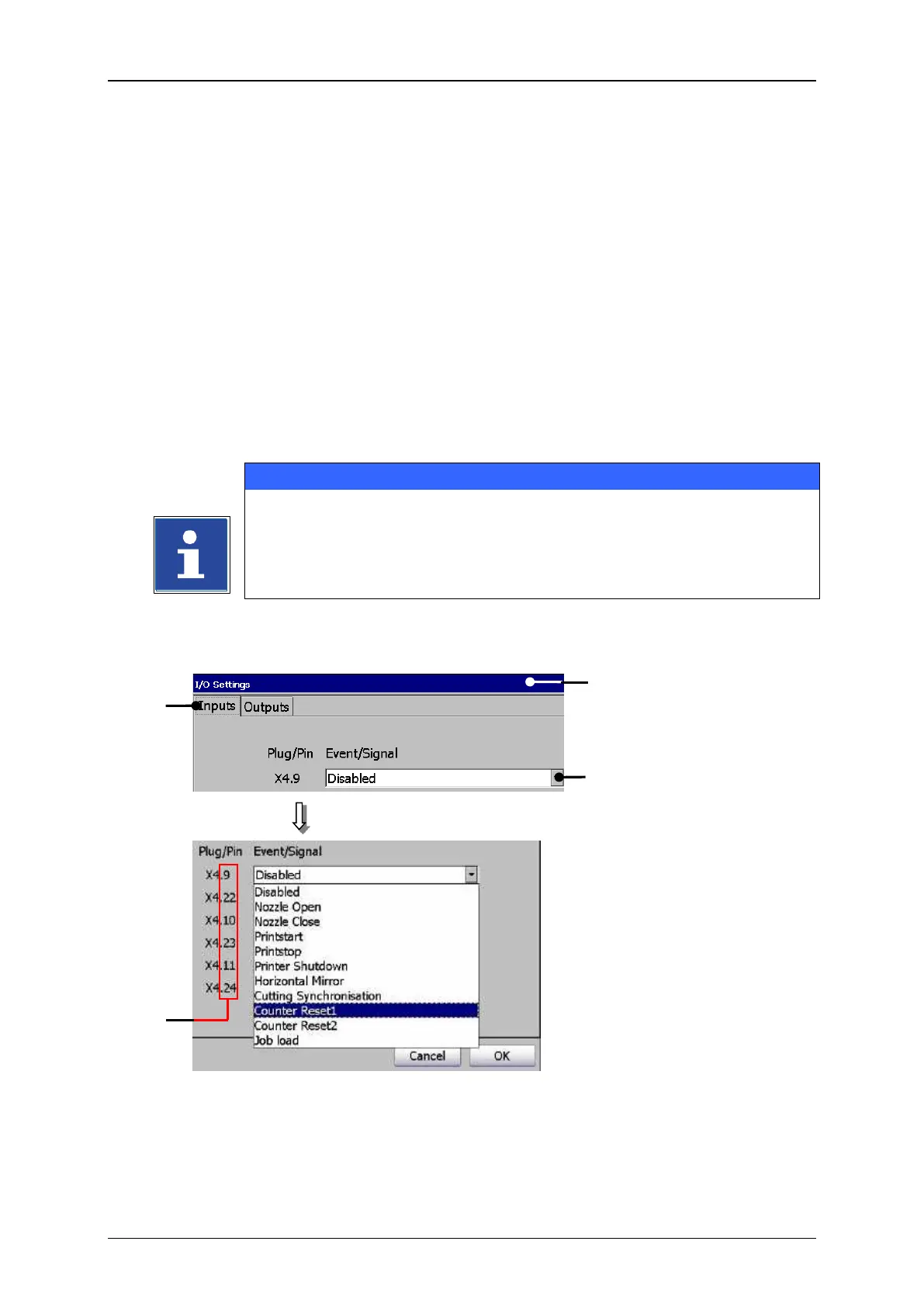 E.g.: Input 1 (X4.9 (of the Pin No. 9 of interface X4)) should be assigned the function