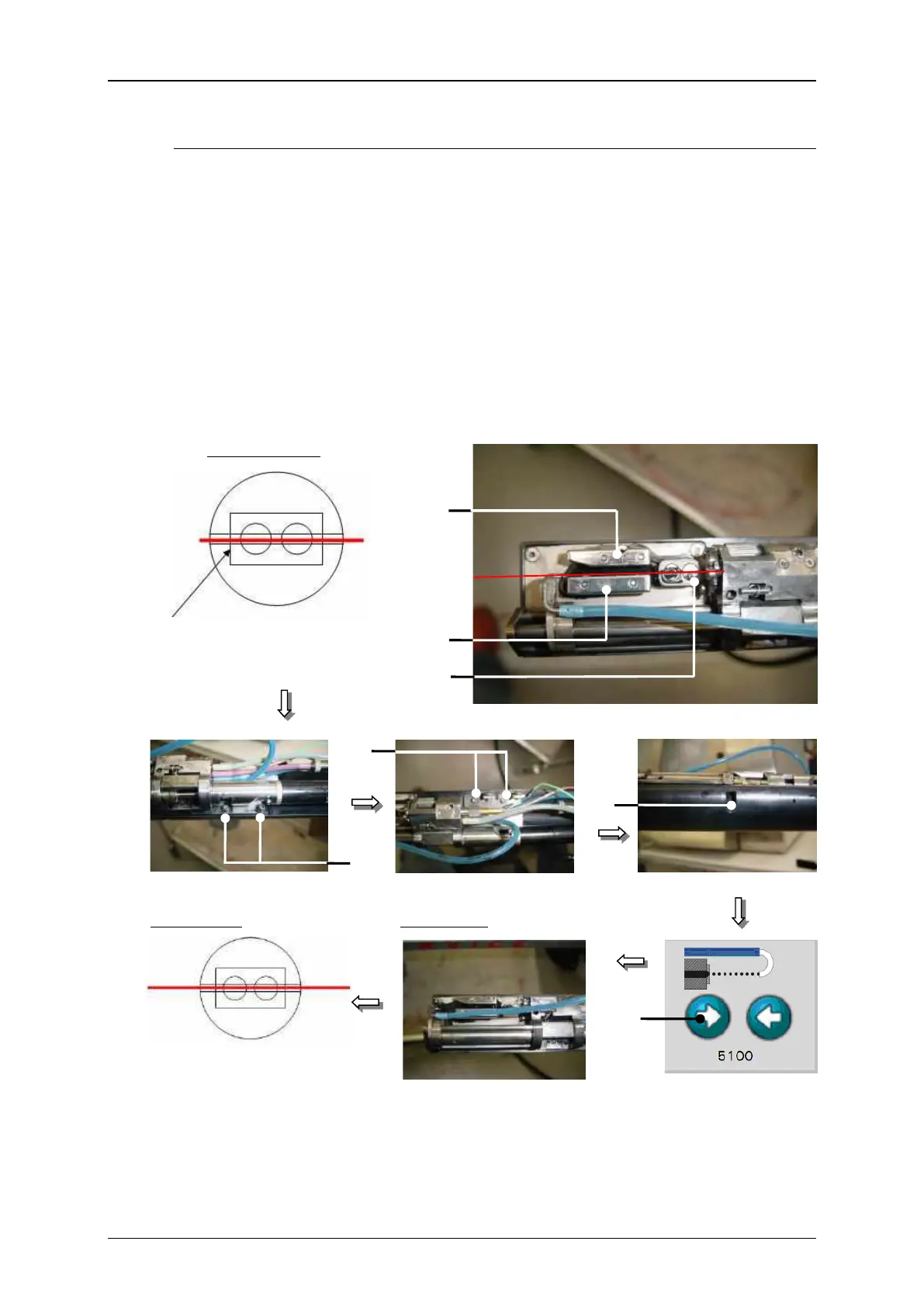 2. Move the unit carefully until the ink jet corresponds with the shown setting