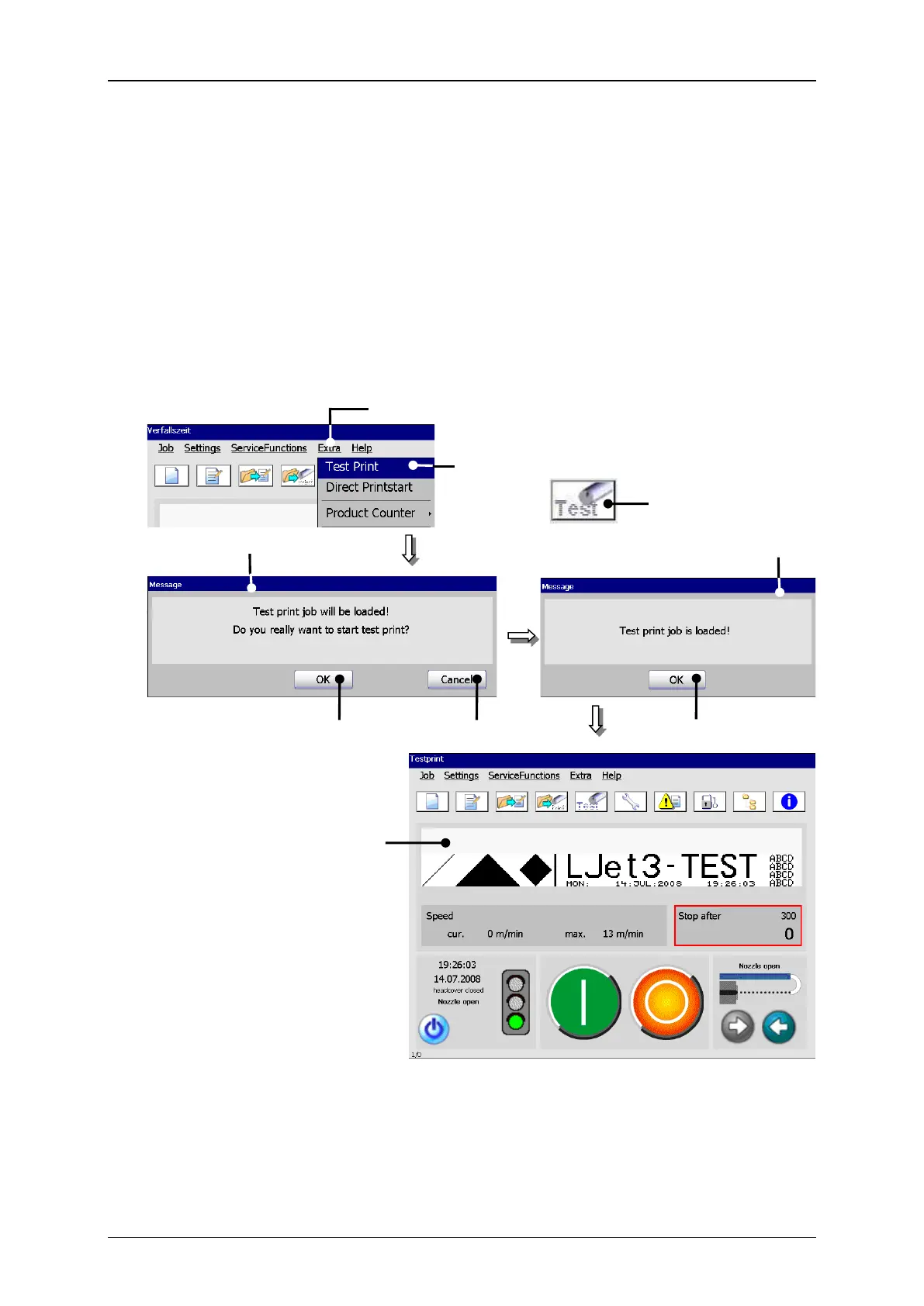 With the option <Test Print> a defined default job with set internal PrintGo-source