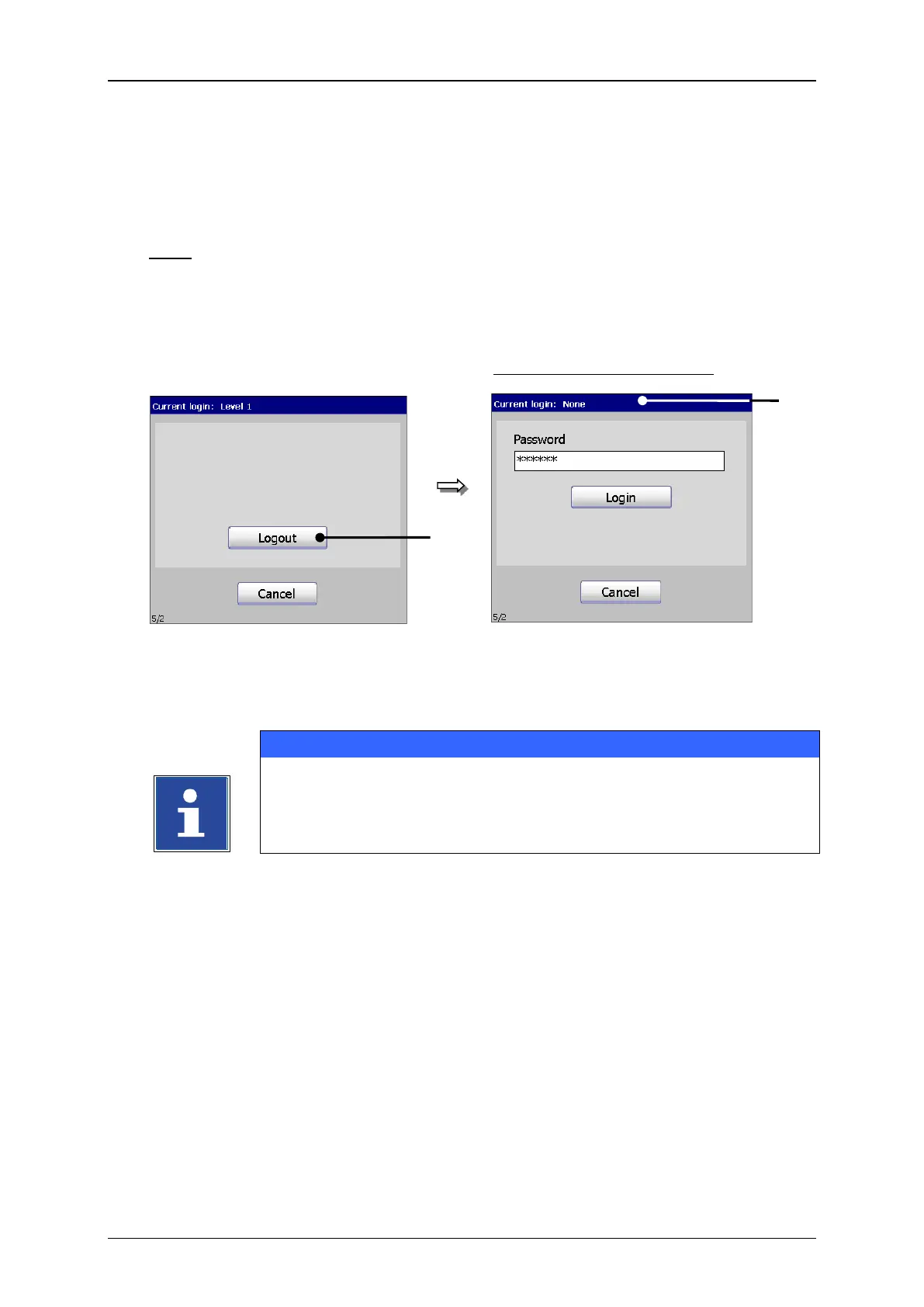 Press the button <Logout> (1). The dialog field is closed and the user is logged