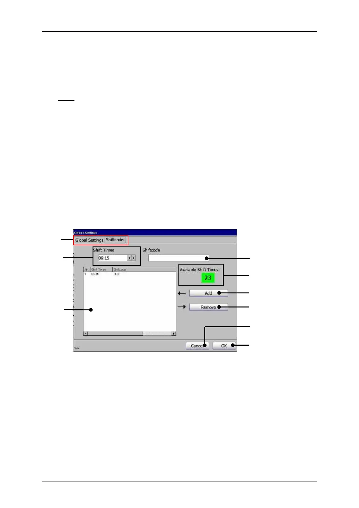 2 – Settings field <Shift times>