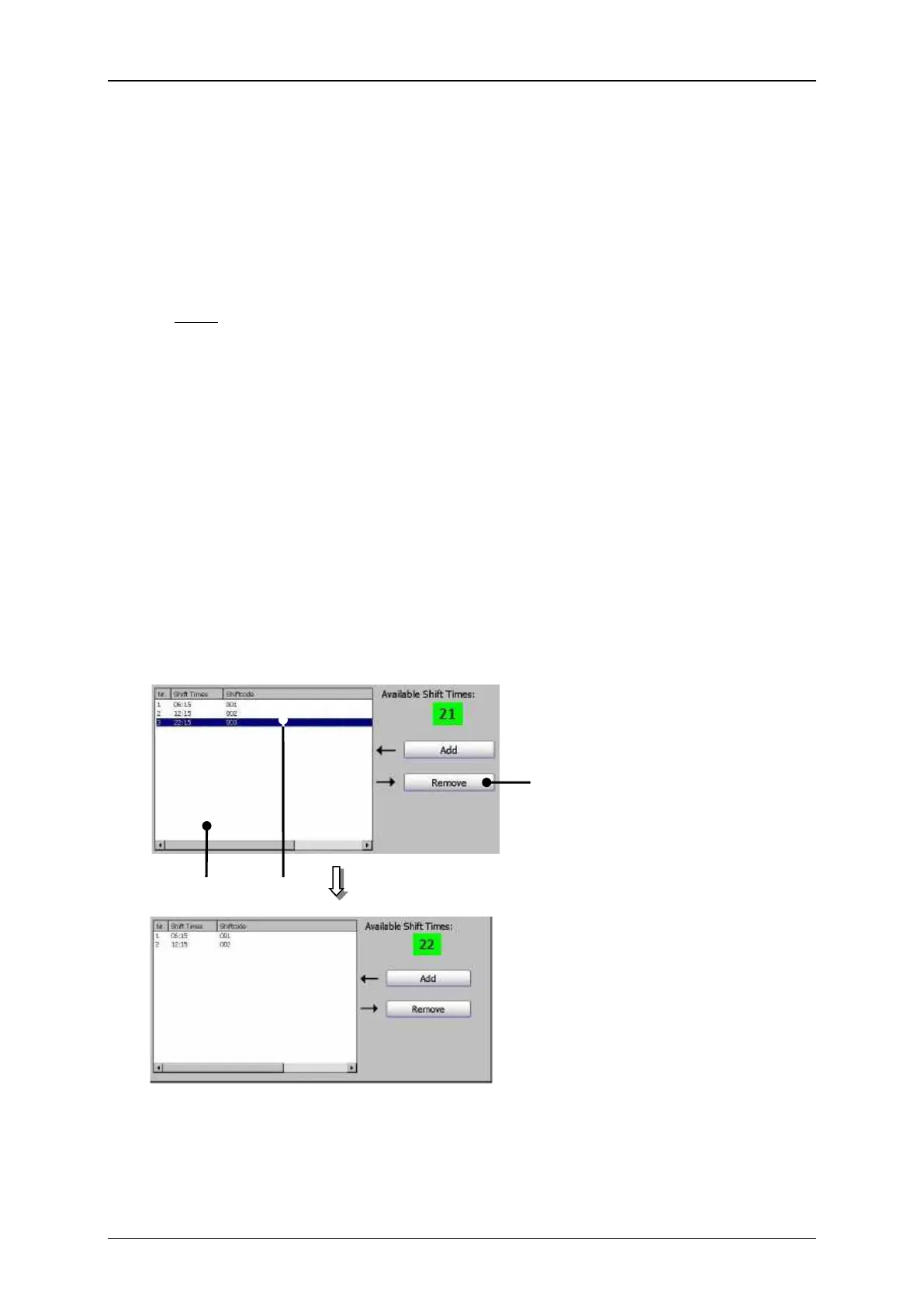 Carry out the inputs („002“ and „003“) accordingly for the further shift codes.