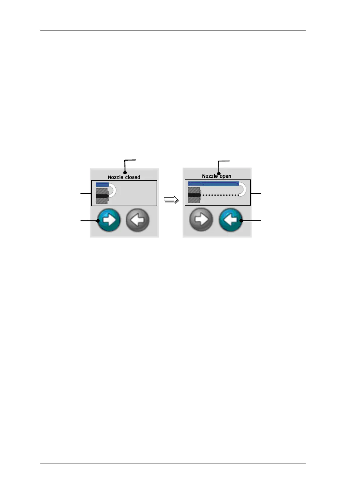 With the buttons <Opening nozzle> (3) and <Closing nozzle> (4) you can open or