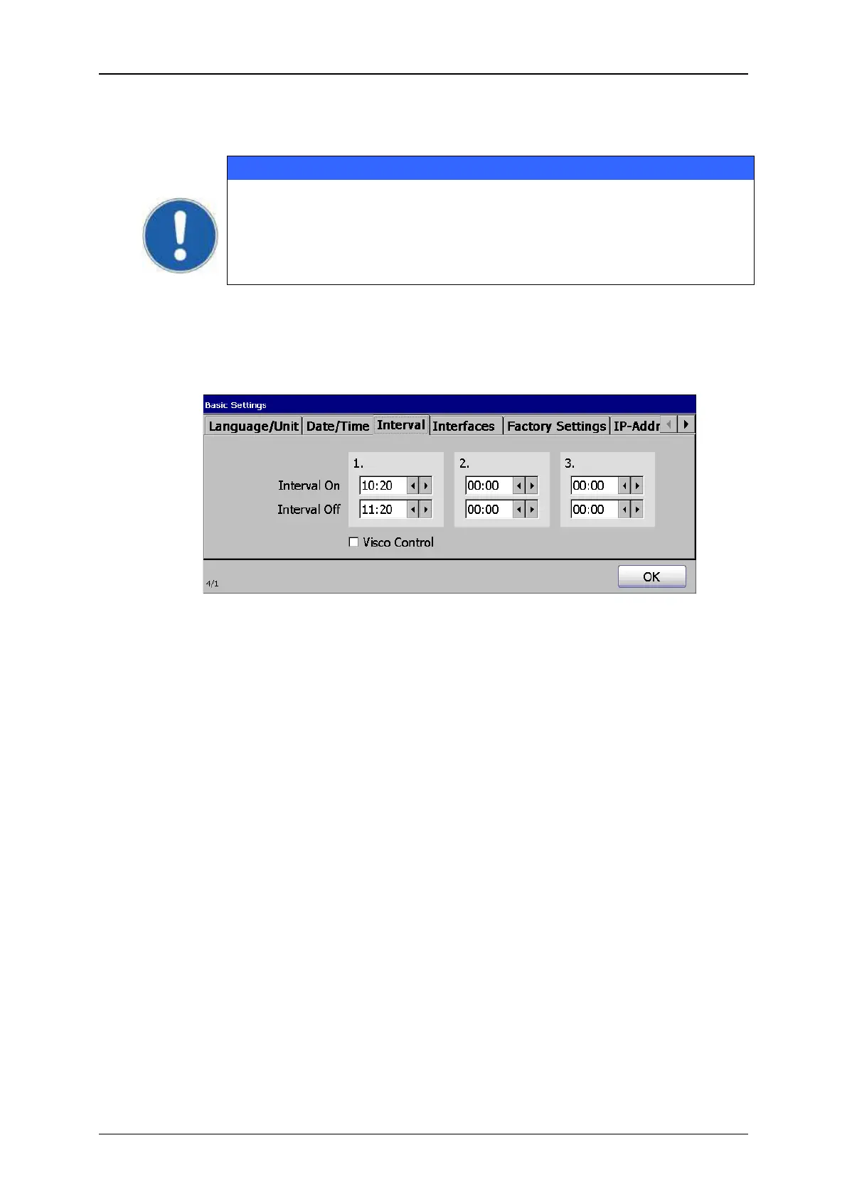 You will find further information regarding setting of interval times in the chapter