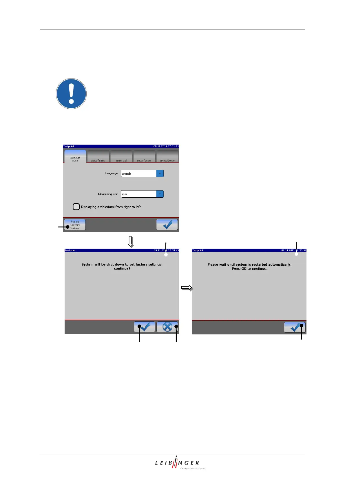 Leibinger JET2neo - Factory Settings; Figure 70 - Reset Device to Factory Settings