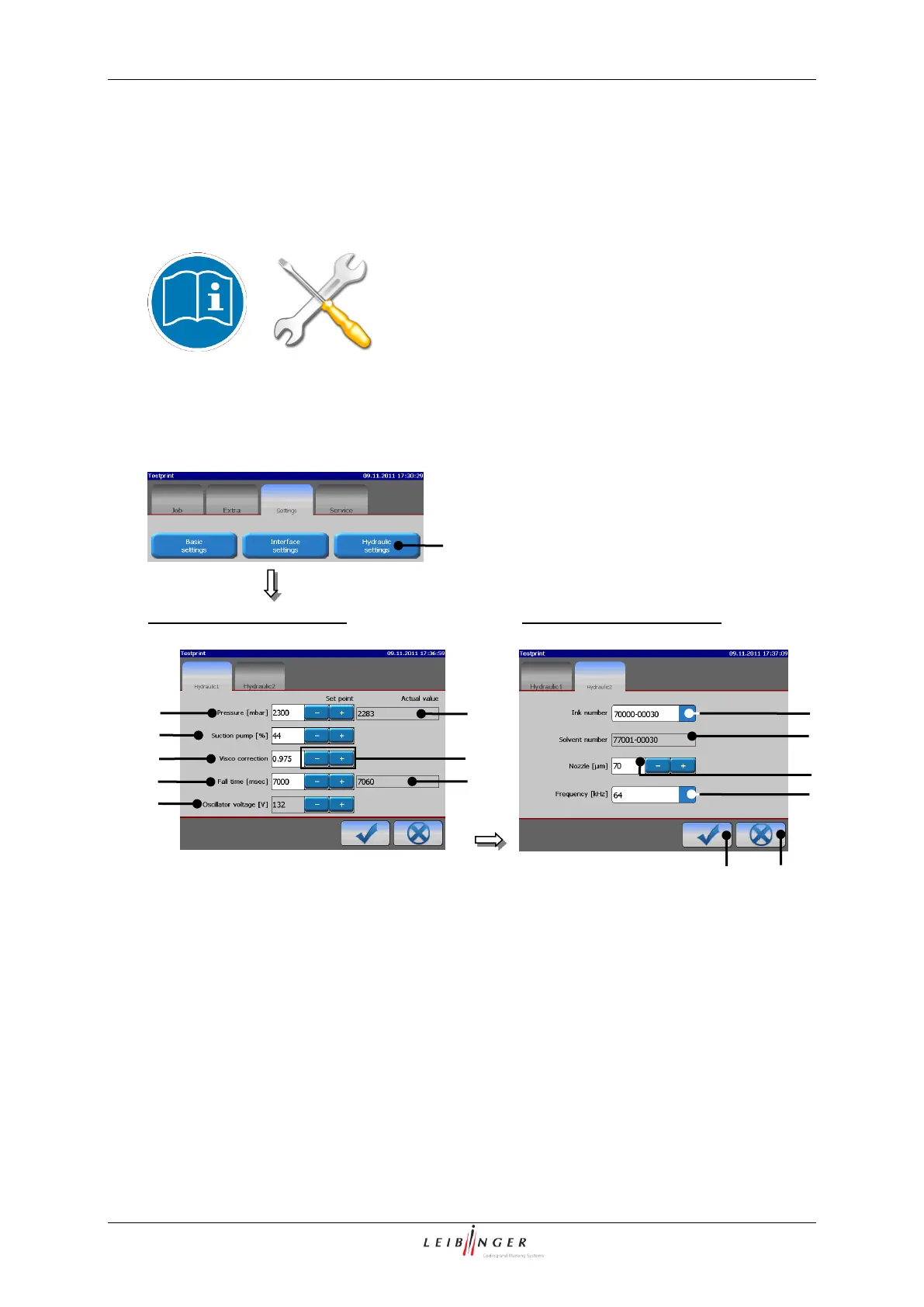 1 – Button <Hydraulic settings>