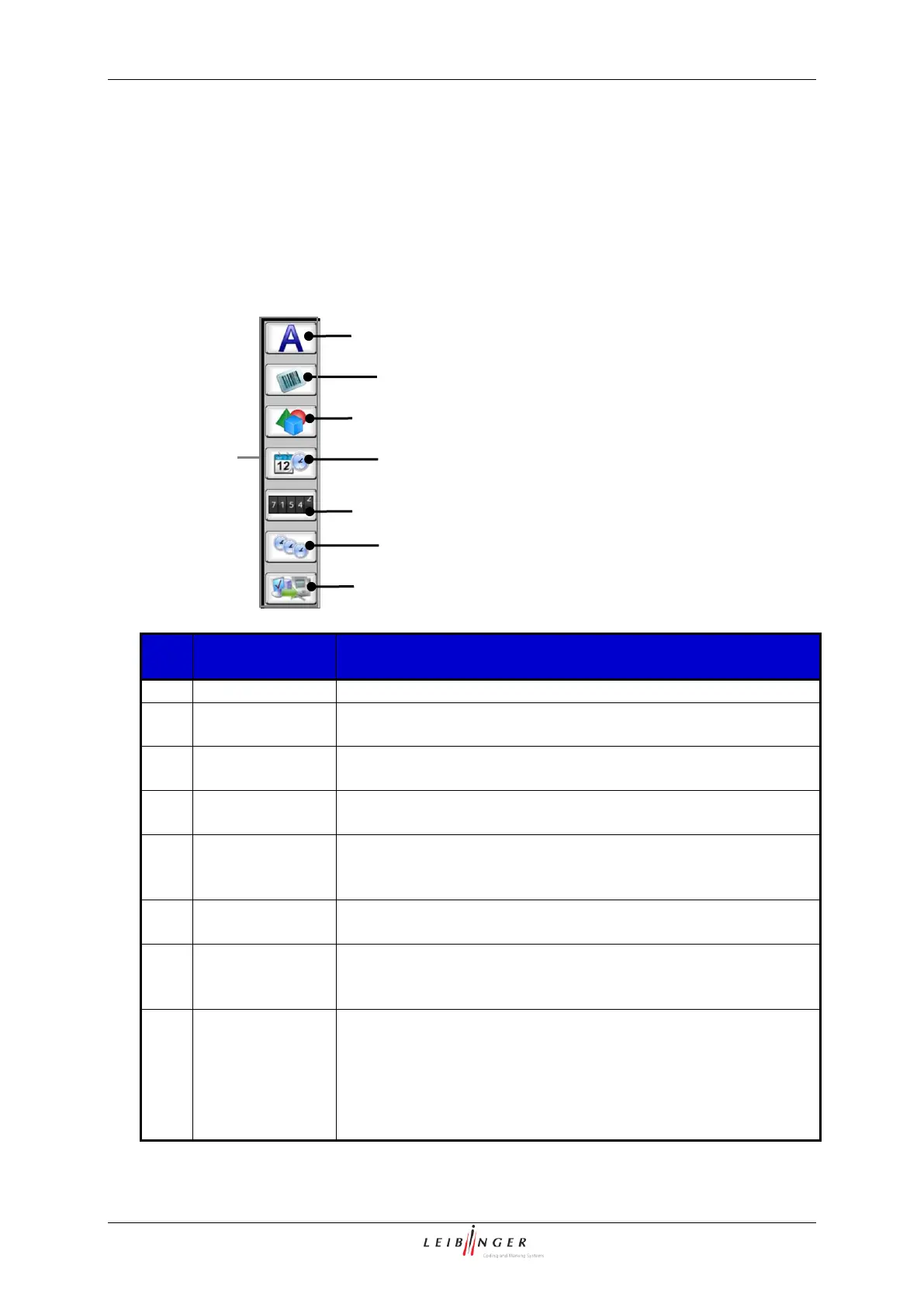 With the icons (direct buttons) you can select tools to create printing elements (texts,