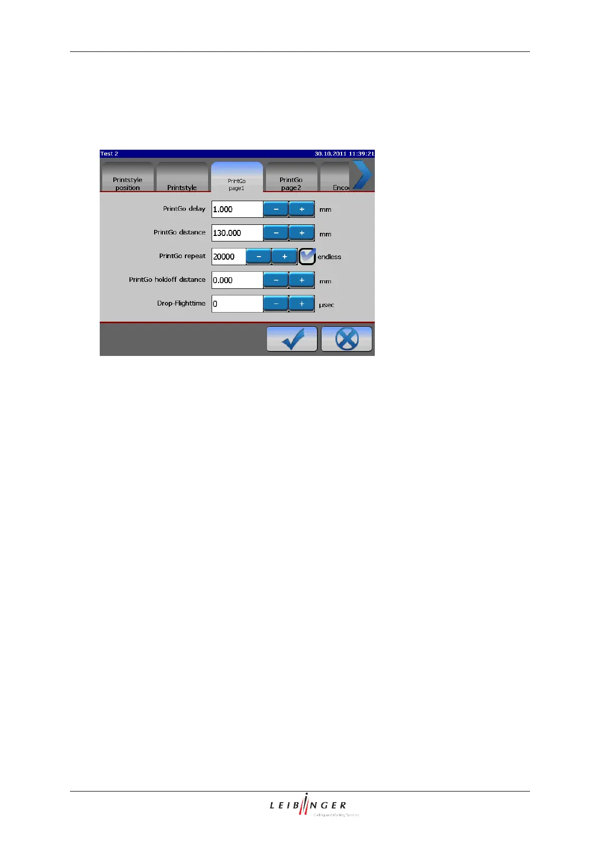 Leibinger JET2neo - Printgo-Parameter; Functional Area Printgo 1