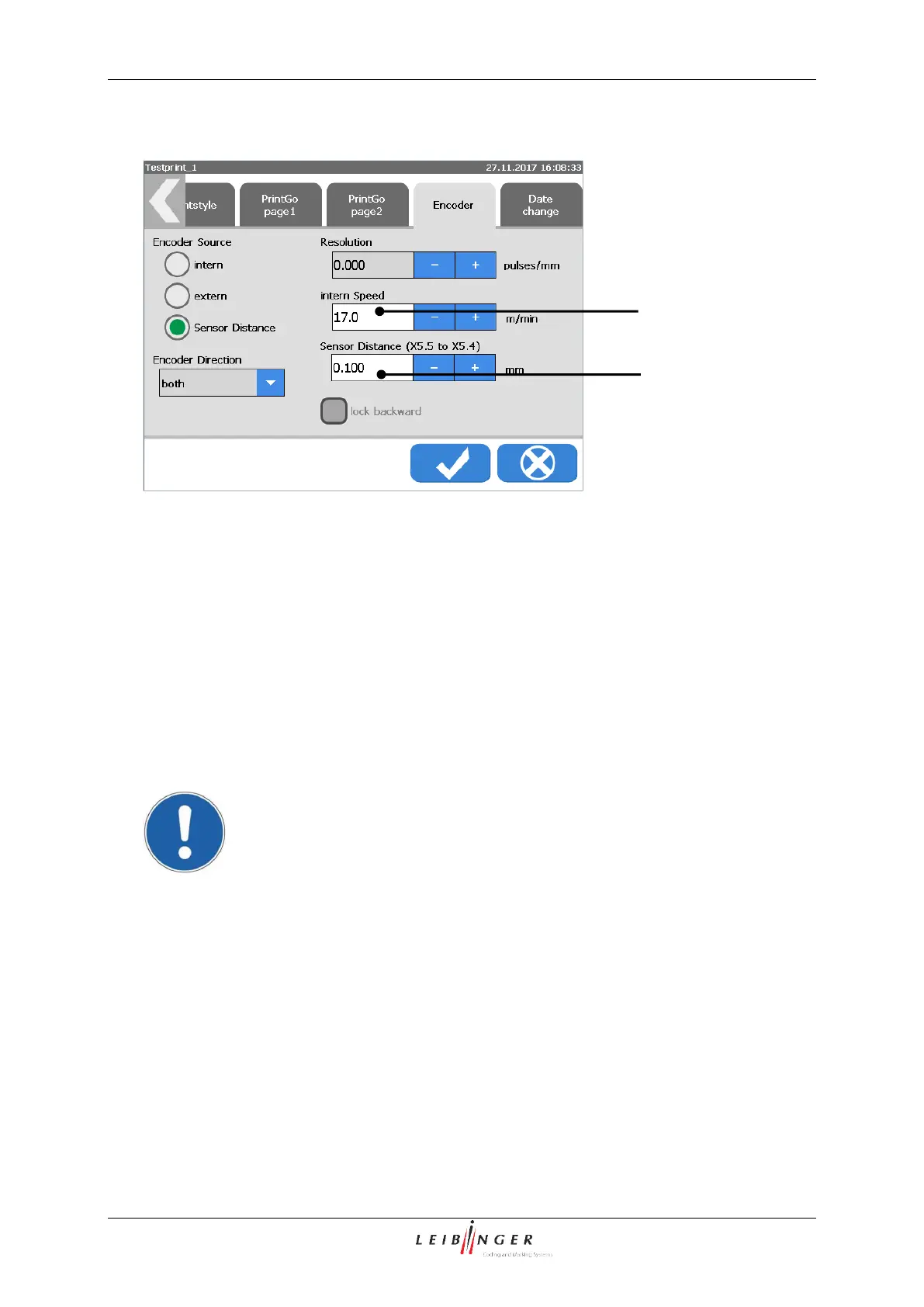 2 – Inputfield <Sensor Distance X5.5 to X5.4>