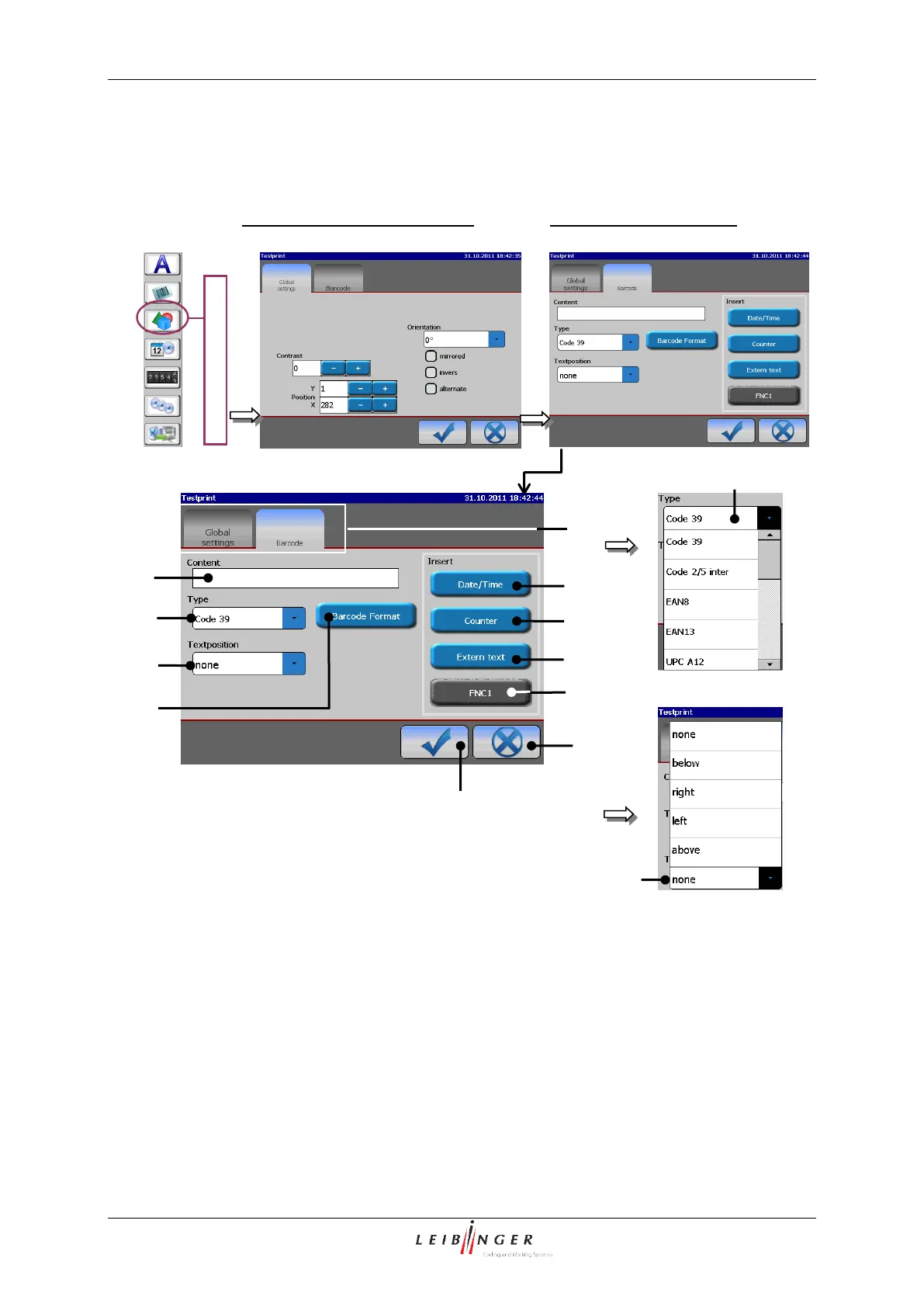 Leibinger JET2neo - Barcode Selection and Insertions; Figure 131 - Printing Elements (Barcode Menu 1)