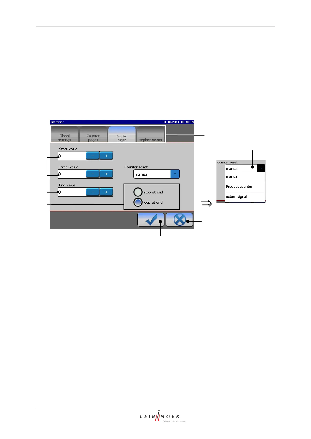 In the functional area <Counter page 2> you can define the following settings: